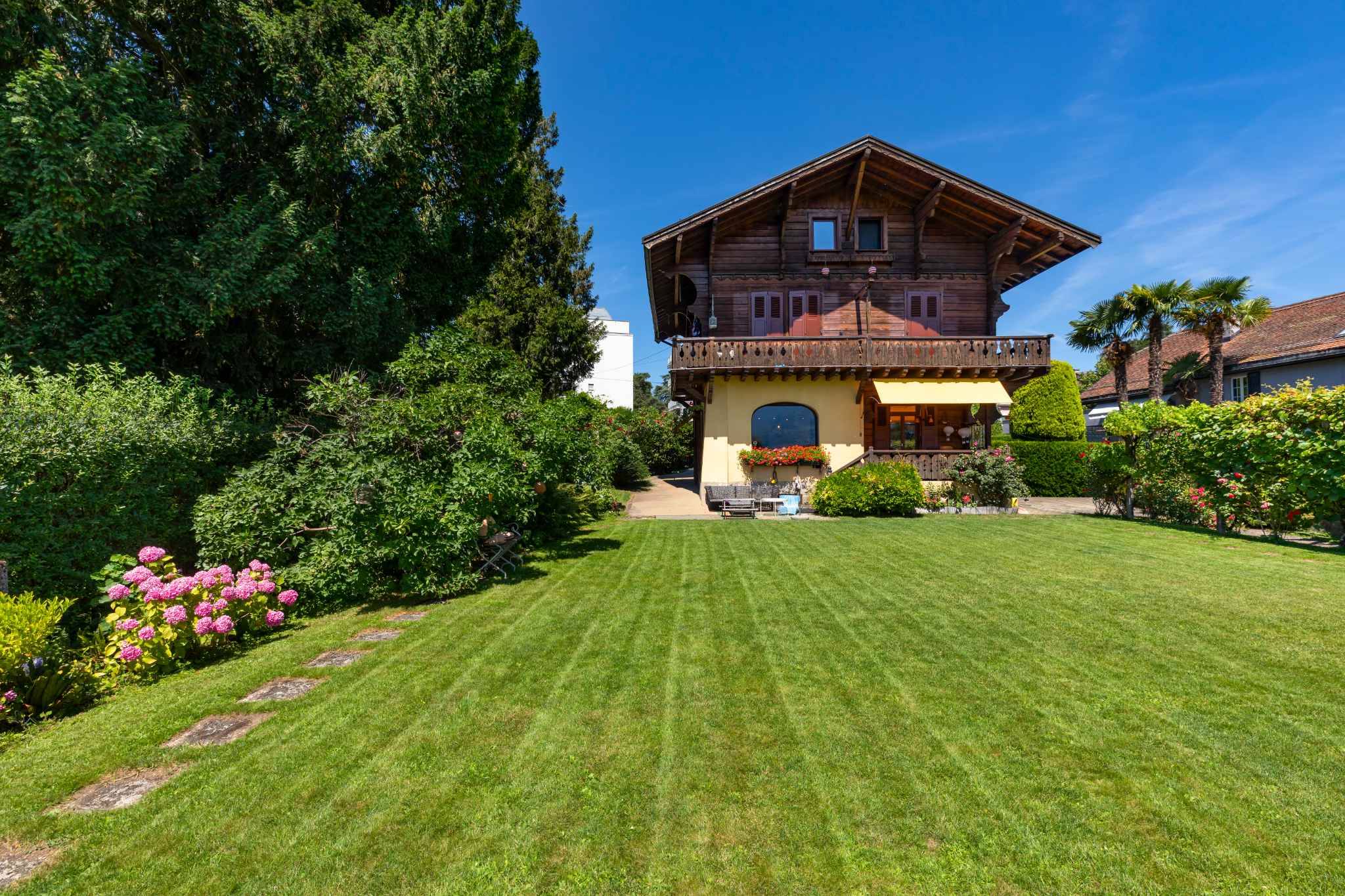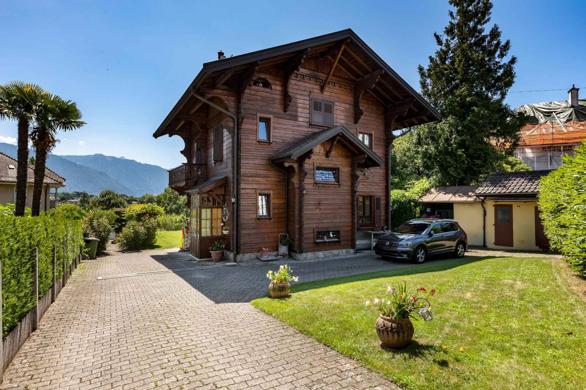 Érigée en 1919, cette charmante propriété de 7,5 pièces s’élève sur quatre niveaux. Maison atypique de style chalet, rappelant une atmosphère de montagne à l’extérieur, elle révèle à l’intérieur une ambiance chaleureuse et cosy, sublimée par des stucs au plafond et une boiserie apparente discrète.