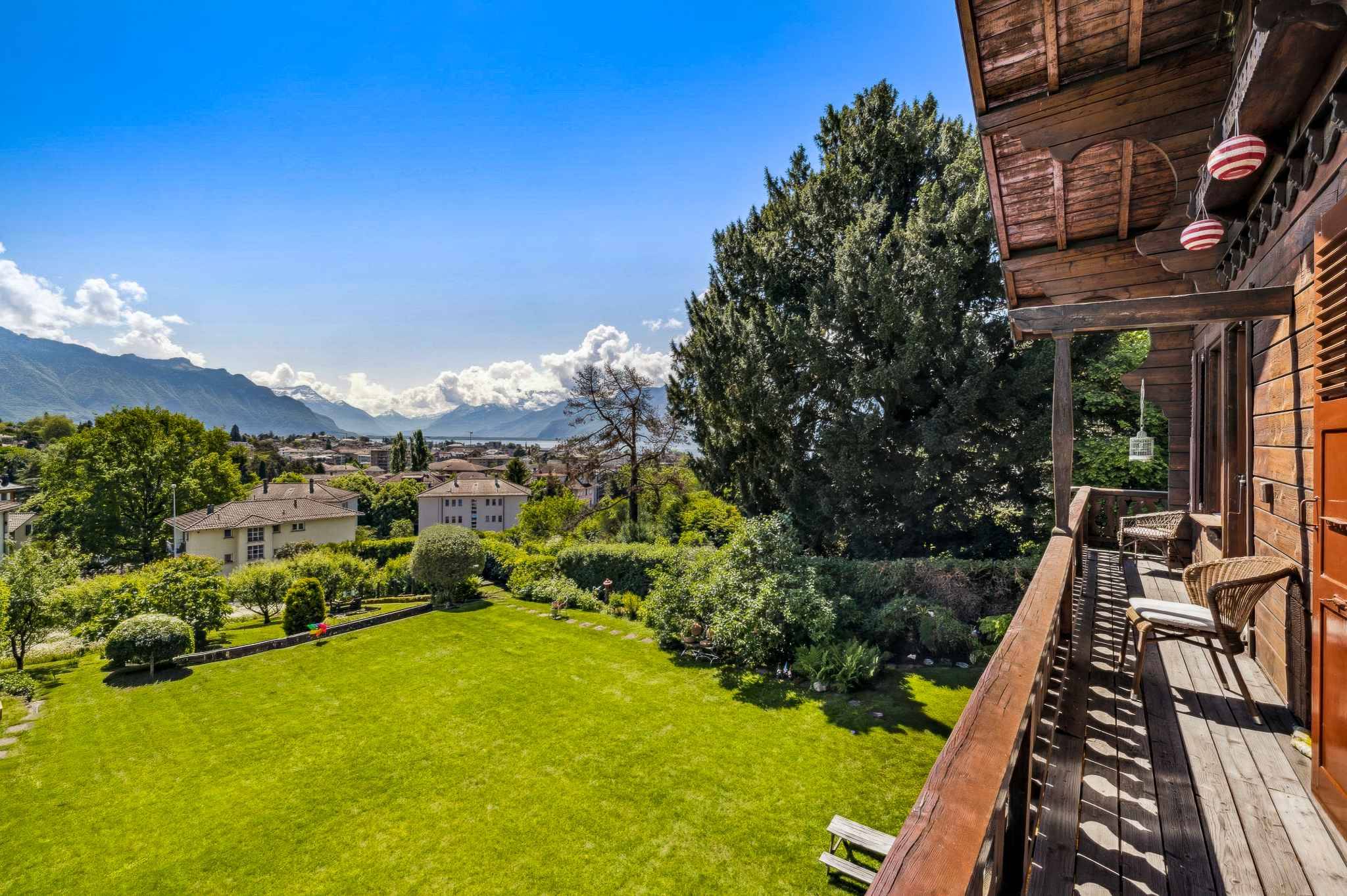 Les espaces extérieurs sont un véritable havre de paix : un jardin arboré et verdoyant, planté de kiwi, vigne, cerisier, pommier et prunier, agrémenté d’un point d’eau sous forme de fontaine. Du côté sud, une pelouse plane offre un espace idéal pour la détente et les loisirs. Deux balcons, l’un au rez-de-chaussée et l’autre filant au premier étage vous offrent un panorama exceptionnel sur Vevey et la Tour-de-Peilz.