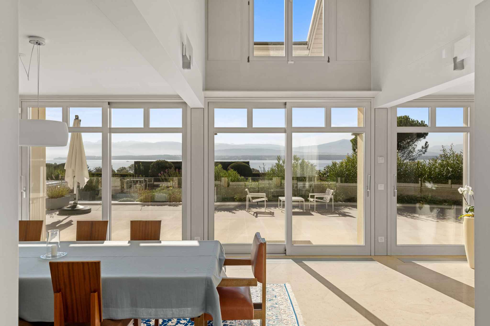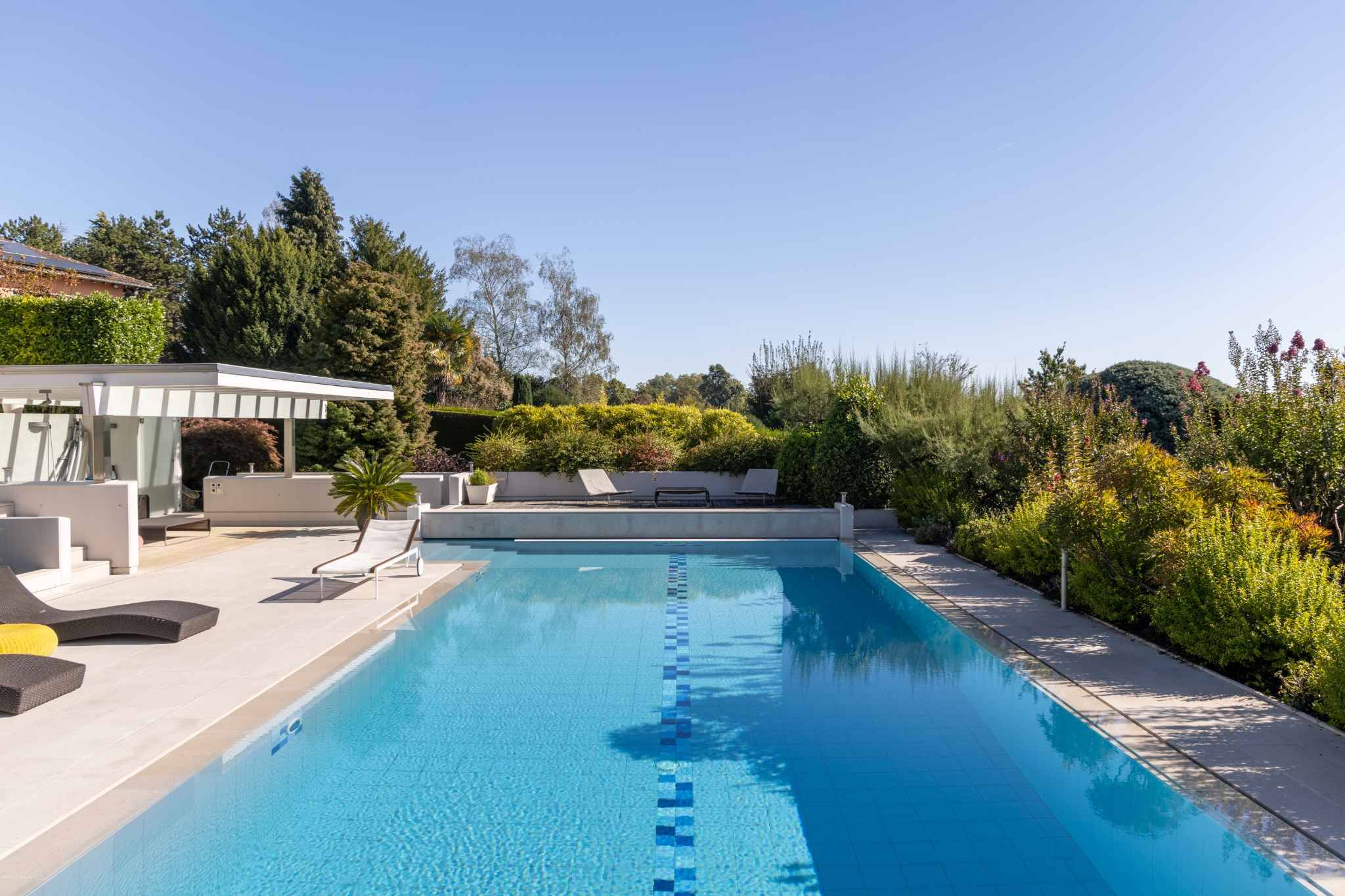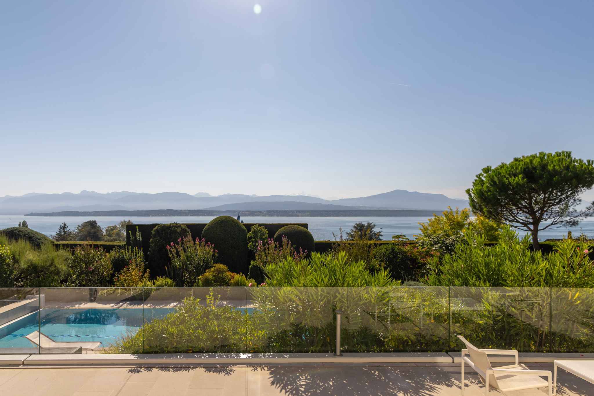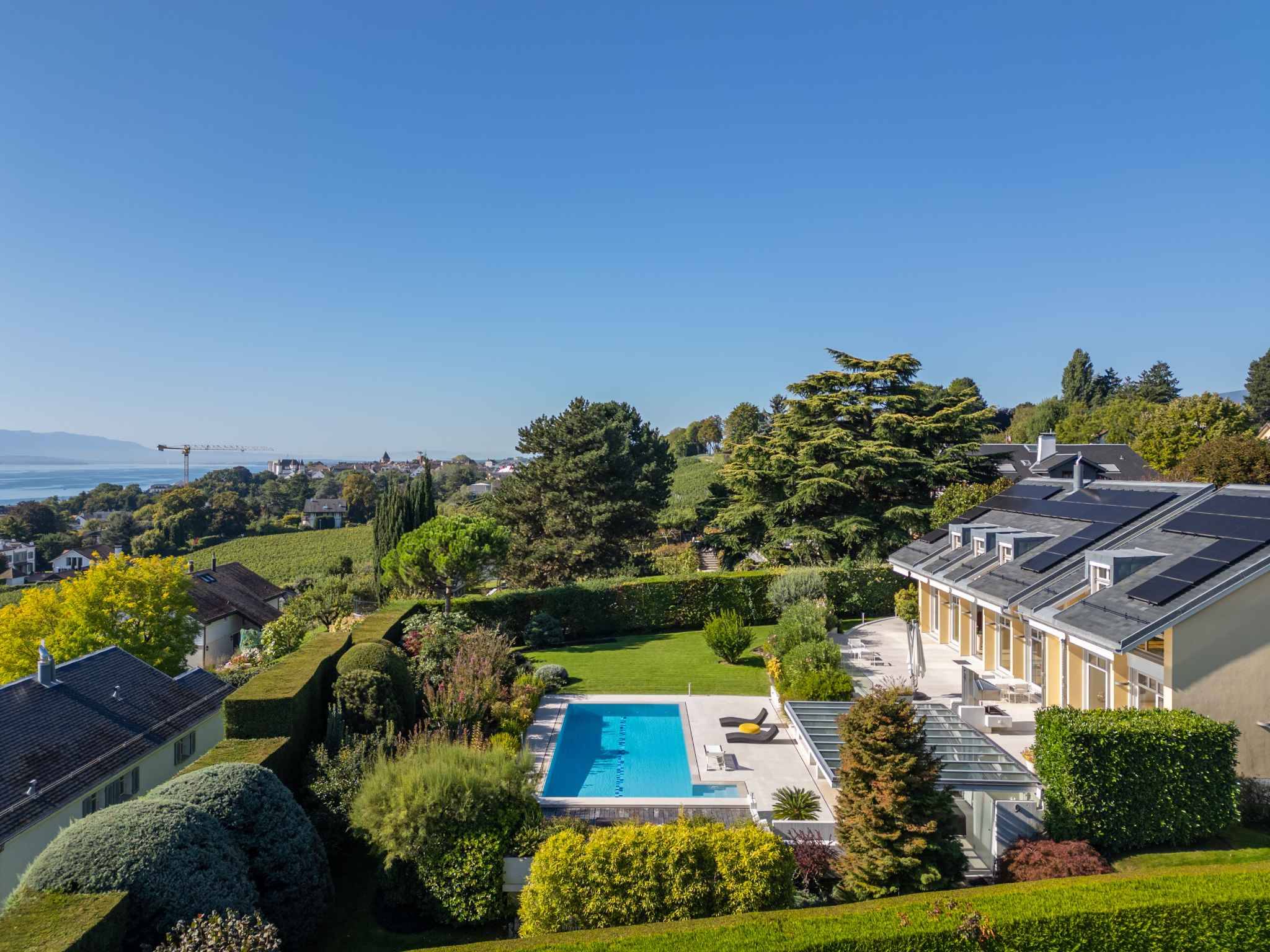 Au cœur de la région de La Côte, nichée dans la charmante commune de Prangins, cette magnifique propriété associe élégance et modernité, tout en bénéficiant d’une vue spectaculaire sur le lac Léman ainsi que sur le Mont-Blanc. Édifiée sur une parcelle de 2’479 m2, à laquelle s’ajoute une servitude de jardin de 210 m2, la surface totale atteint 2’689 m2. Implantée dans l’un des quartiers les plus prisés et exclusifs du bassin lémanique, la résidence s’intègre parfaitement à son environnement grâce à son architecture sobre et raffinée. Située en légère surélévation, elle offre un panorama unique et une tranquillité absolue, tout en demeurant proche des commodités de Nyon.
