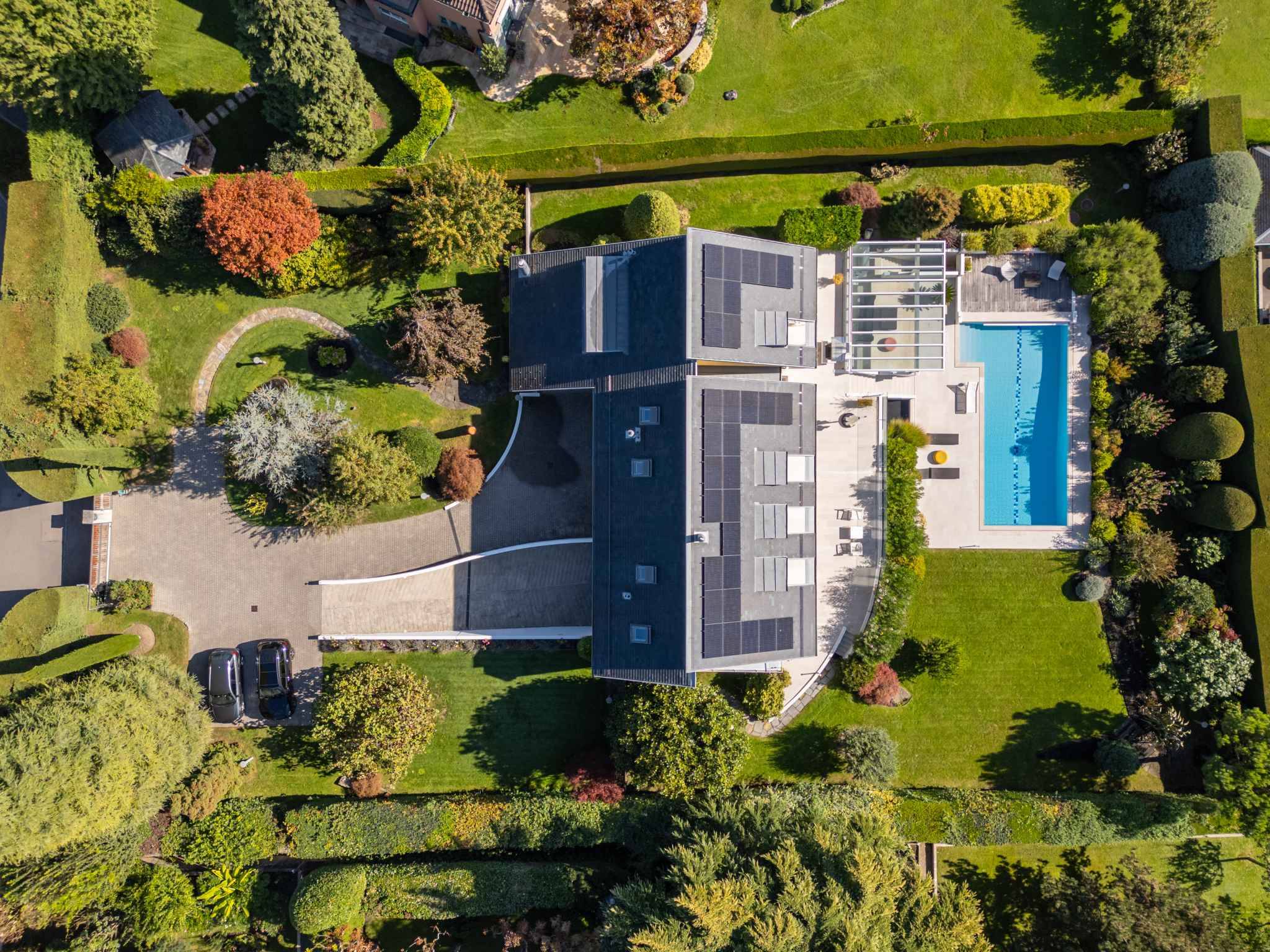 • Rénovation énergétique (2023) : la maison a été modernisée afin de répondre aux standards écologiques actuels. Elle est équipée d’une chaudière au gaz à condensation Elco, classe énergétique A/A+, d’une puissance de 36.6 kW, associée à un boiler de 400 litres. Des panneaux photovoltaïques d’une surface de 60 m2, pour une production annuelle de 80 kW, avec batterie de stockage, permettent désormais à la résidence d’atteindre l’autosuffisance en électricité.