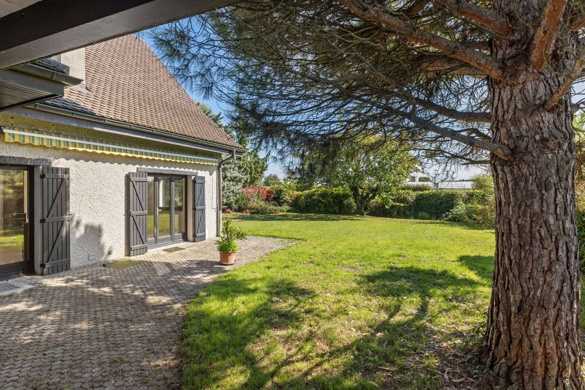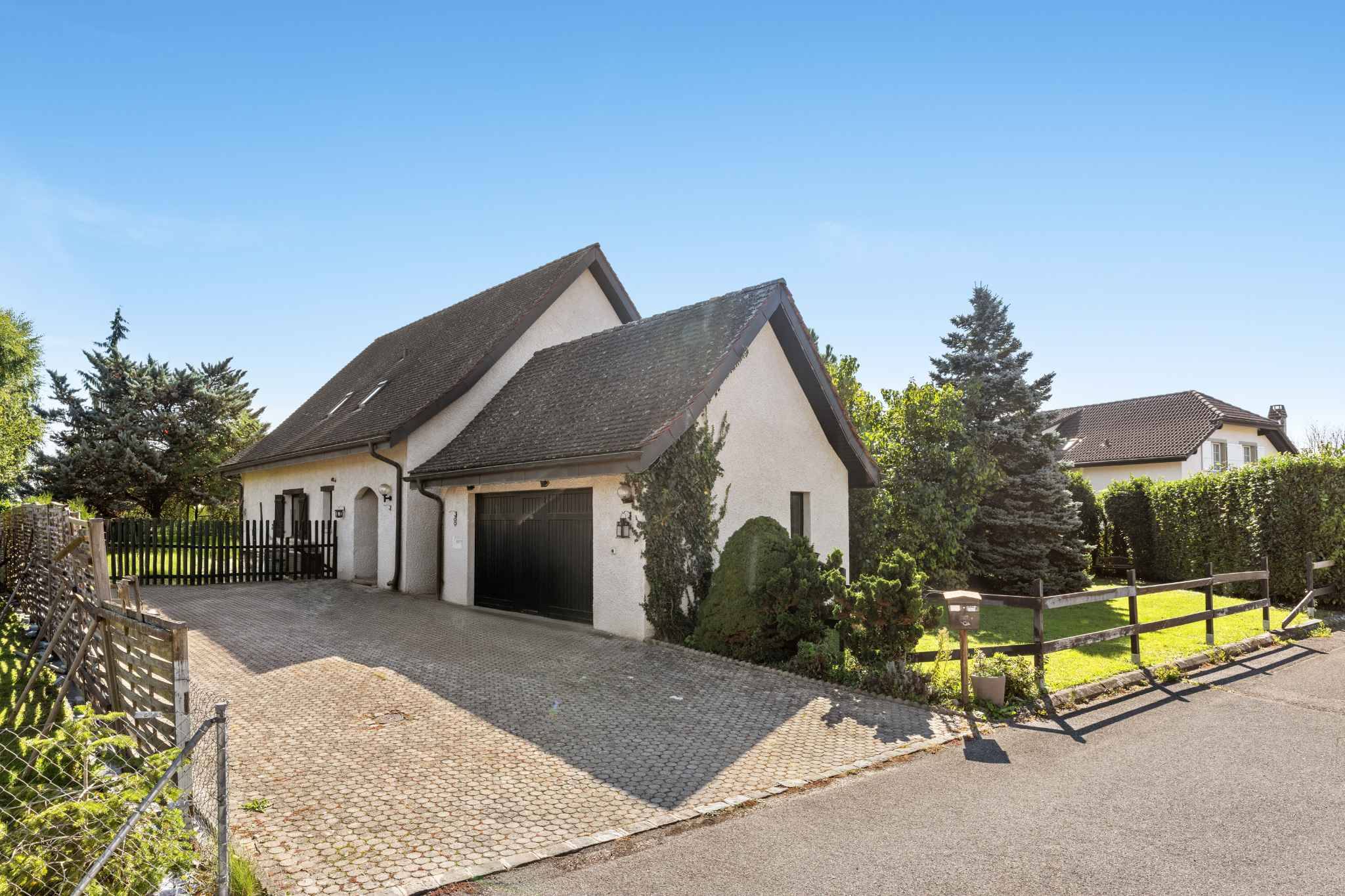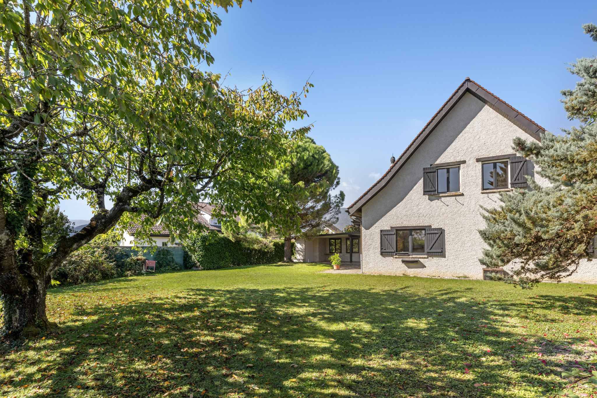 Érigée sur une généreuse parcelle de 1’235 m², la propriété offre un bel équilibre entre intimité, espace extérieur et confort intérieur. La surface habitable de 180 m² est répartie intelligemment, avec des volumes spacieux et lumineux qui s’adaptent à tous les styles de vie.