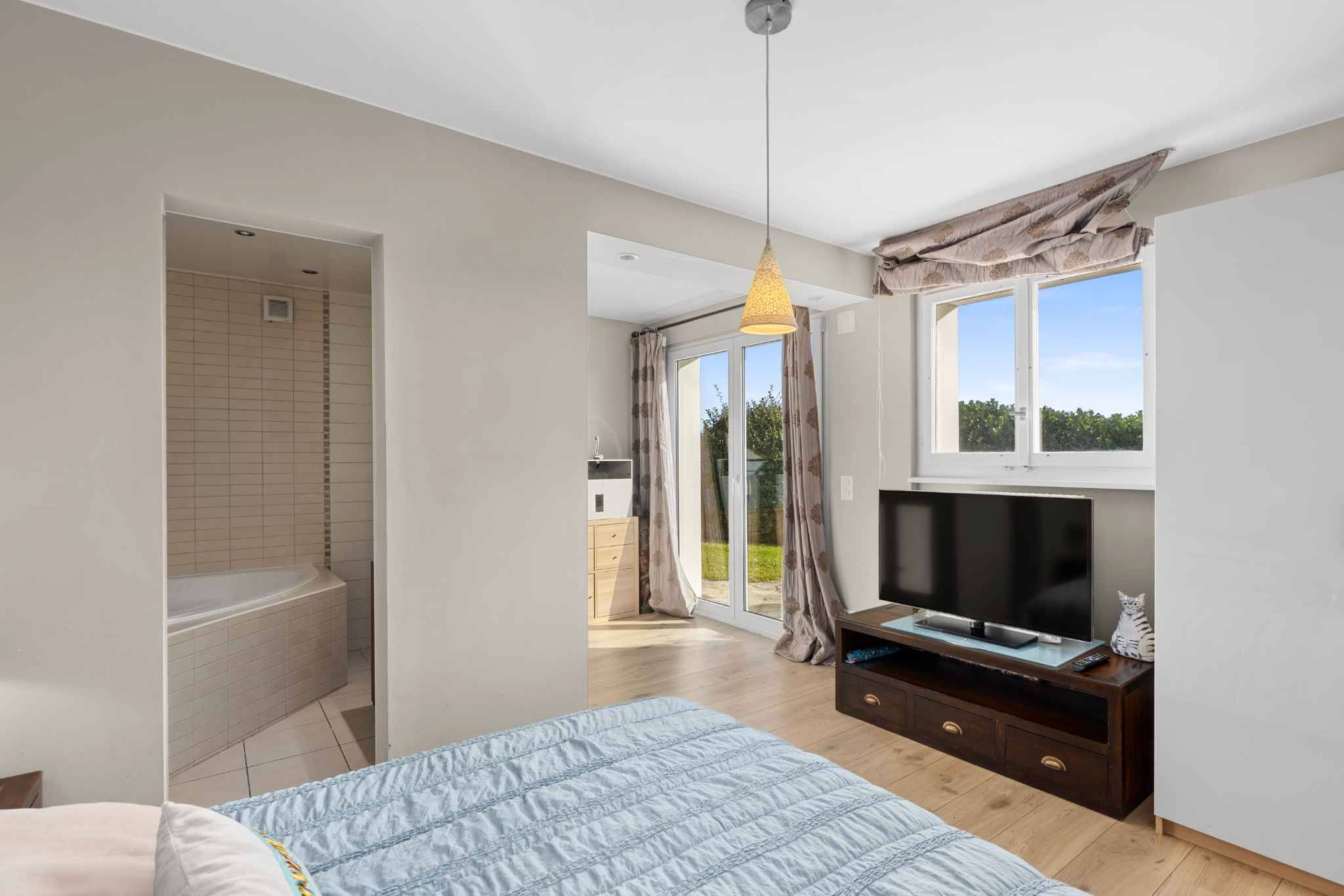 La villa dispose de 4 chambres, dont certaines avec salle de bains et dressing attenants, garantissant intimité et confort. Un appartement indépendant comprenant chambre, séjour, cuisine et salle de douche permet de recevoir proches ou invités en toute autonomie. Un bureau séparé vient compléter les espaces intérieurs et se prête parfaitement à une activité professionnelle.