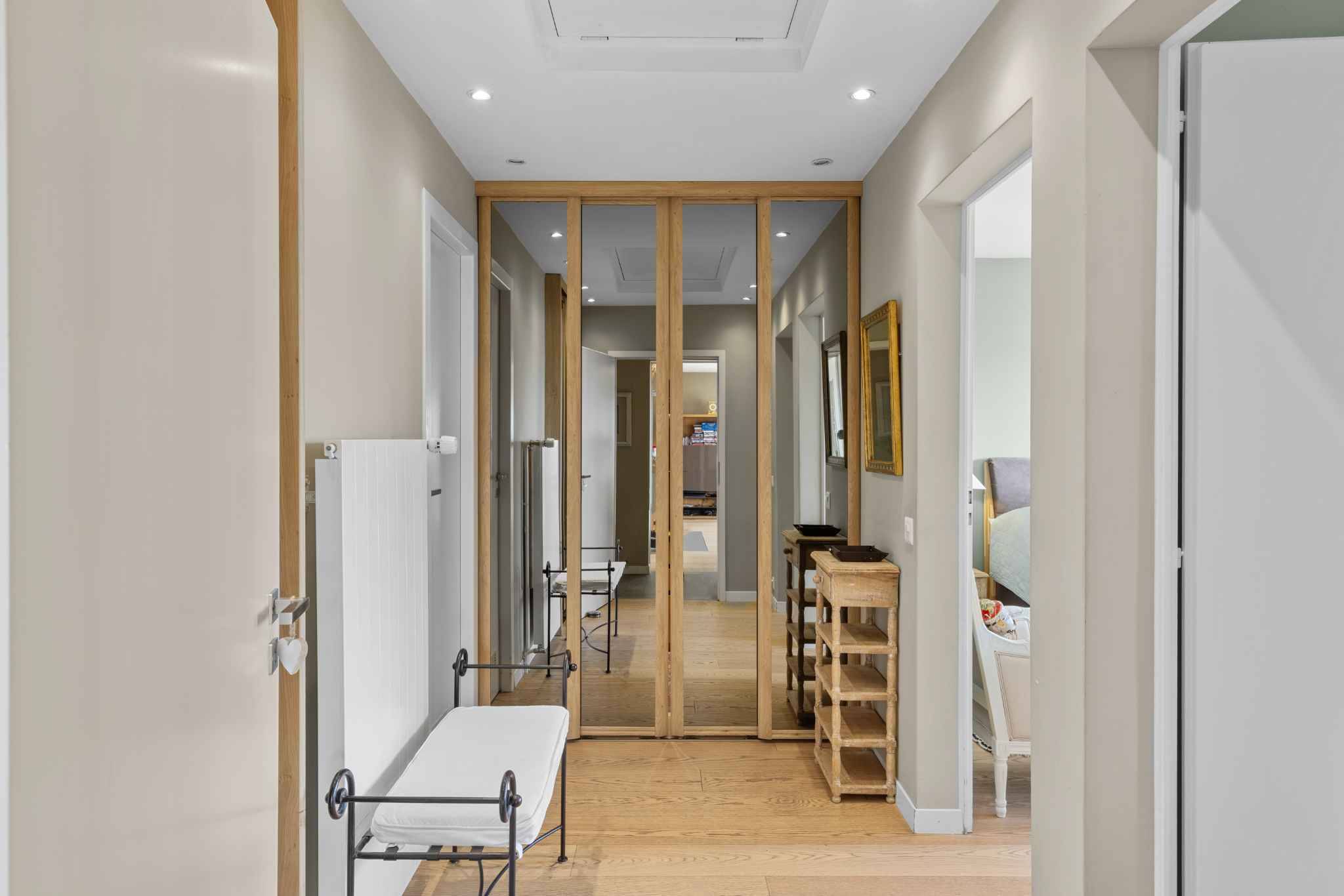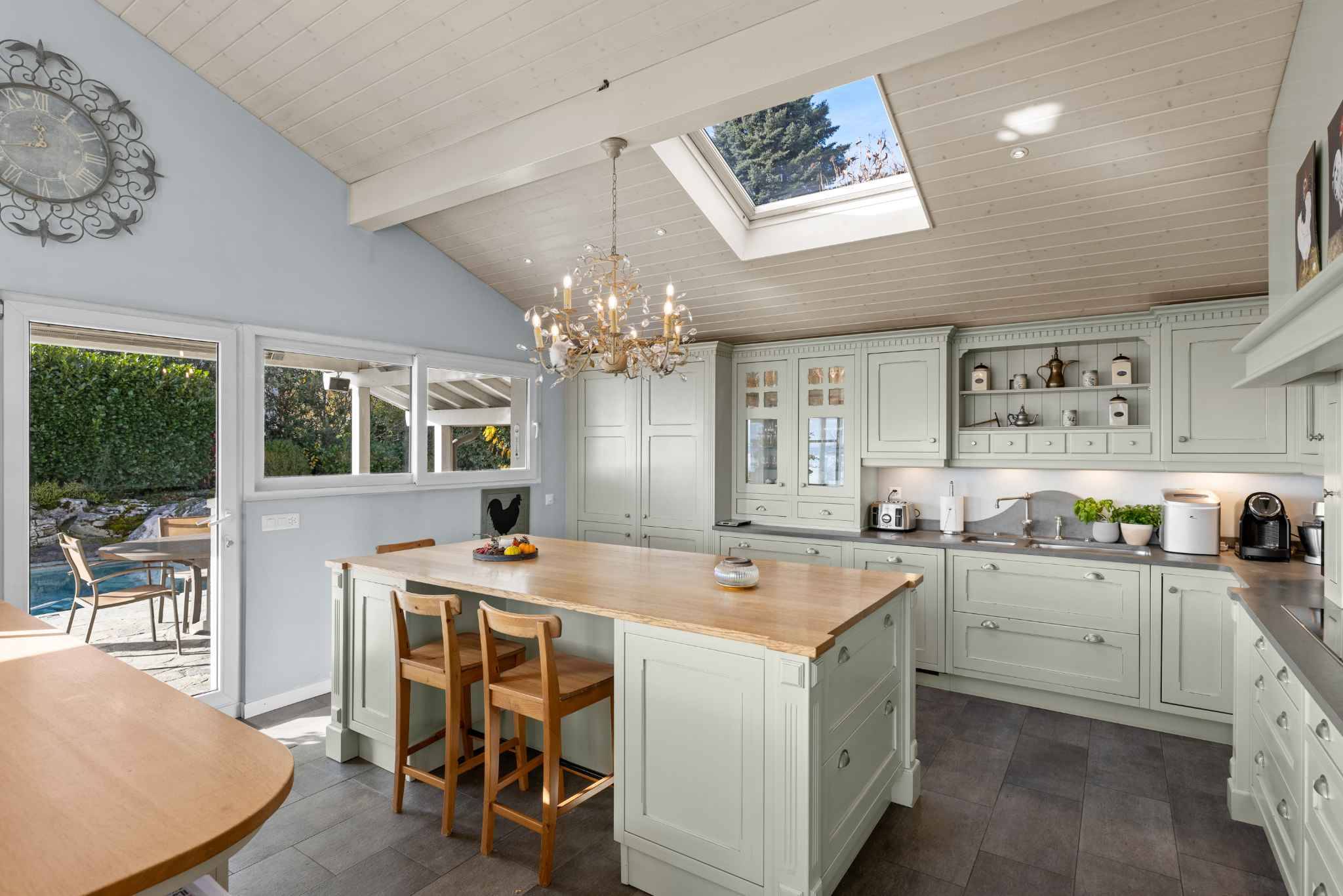 À l’extérieur, le jardin paysager, les terrasses en pierre et la piscine naturelle chauffée par panneaux solaires composent un ensemble harmonieux dédié à la détente. Un portail électrique assure la tranquillité des lieux, tandis que la cour d’accès et les quatre places de stationnement extérieures facilitent le quotidien. Plus qu’une habitation, cette propriété est une véritable parenthèse de bien-être, à vivre au quotidien.