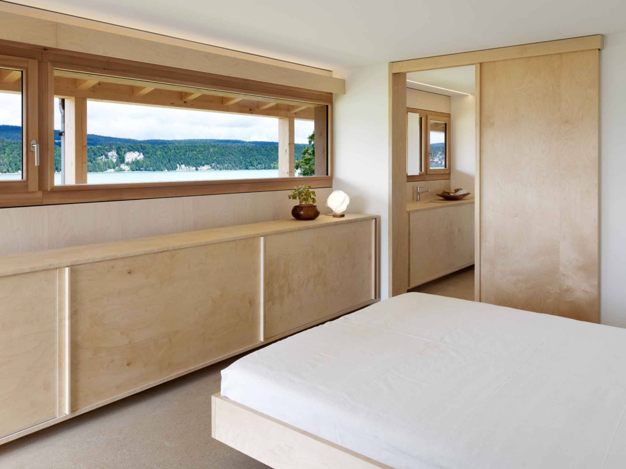 Toutes les pièces sans exception, depuis les chambres et les salles de bains jusqu’à la cuisine et au salon, bénéficient d’une vue directe sur le lac, permettant une immersion totale dans le paysage.