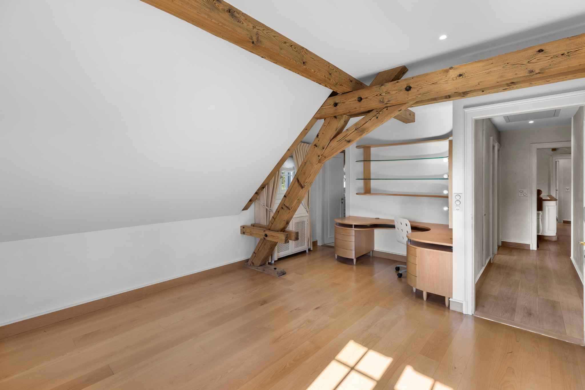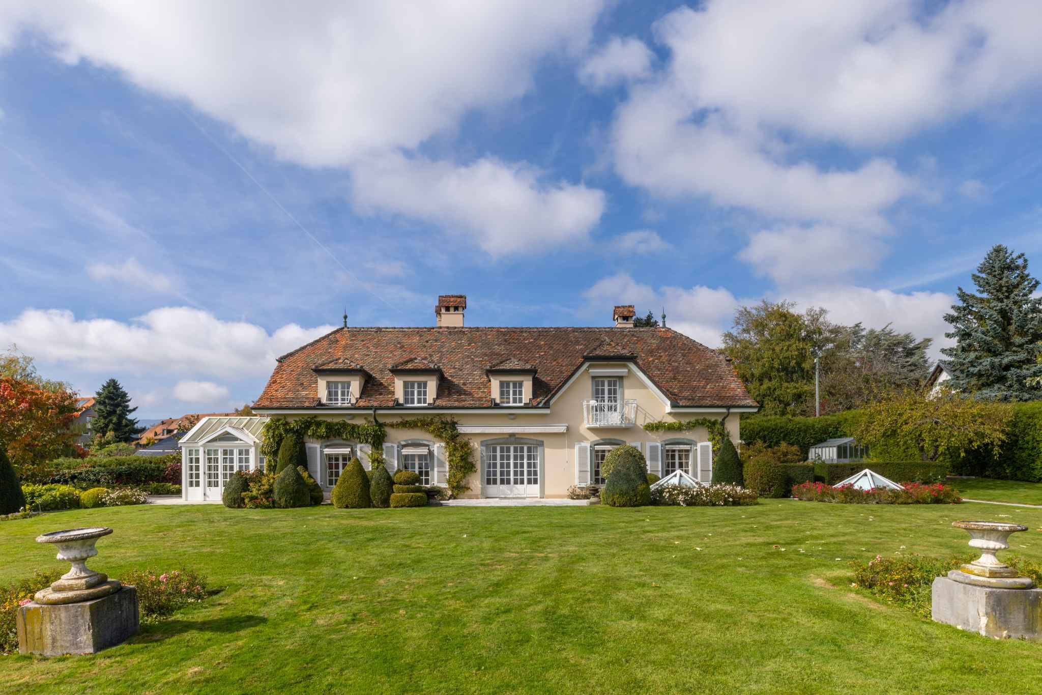 Édifiée dans un style vaudois intemporel et agrandie en 1992, la propriété développe environ 400 m² habitables, complétés par près de 150 m² dédiés au bien-être. Les espaces intérieurs se distinguent par leur luminosité, leur agencement fluide et la qualité des matériaux.