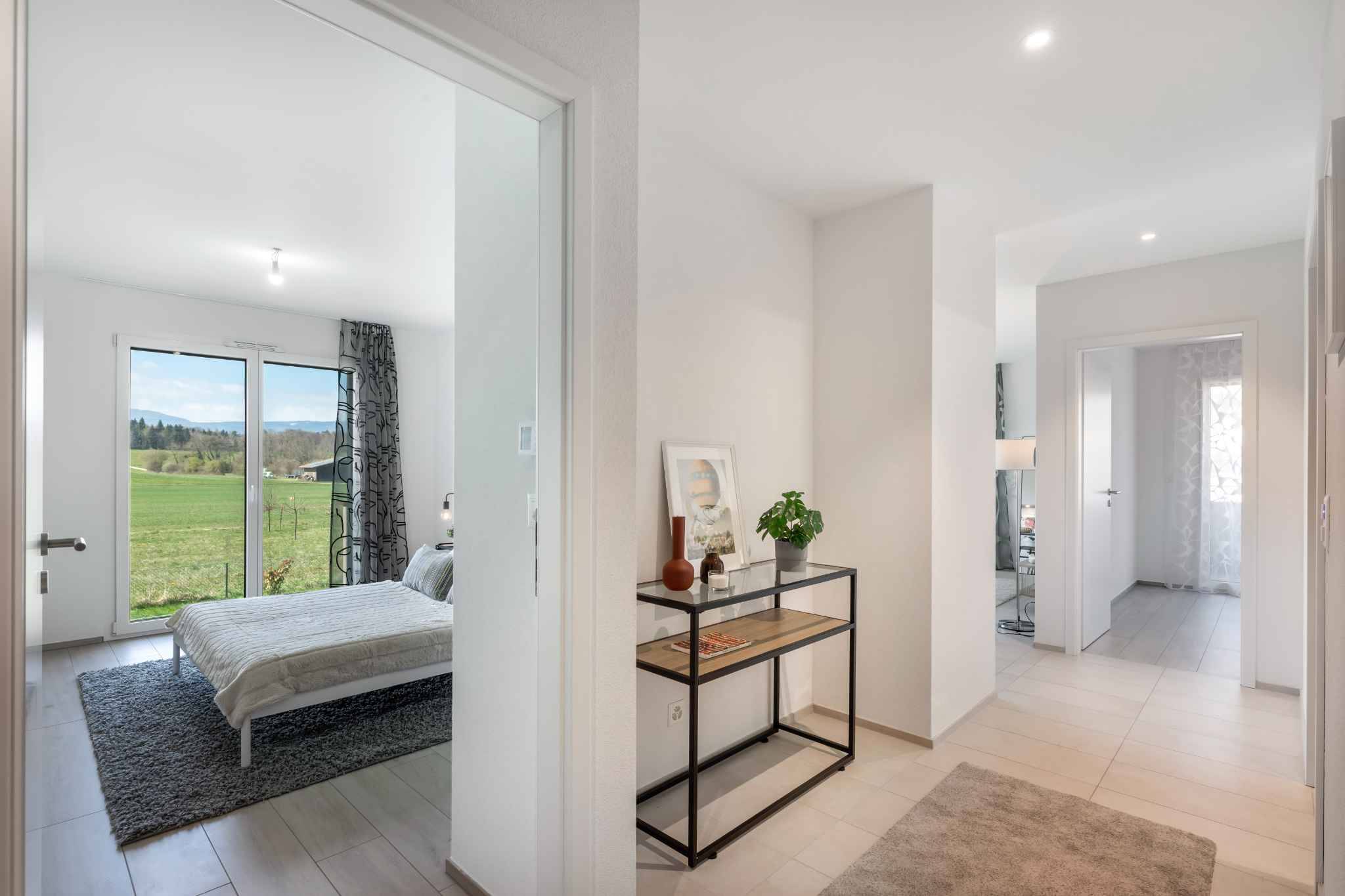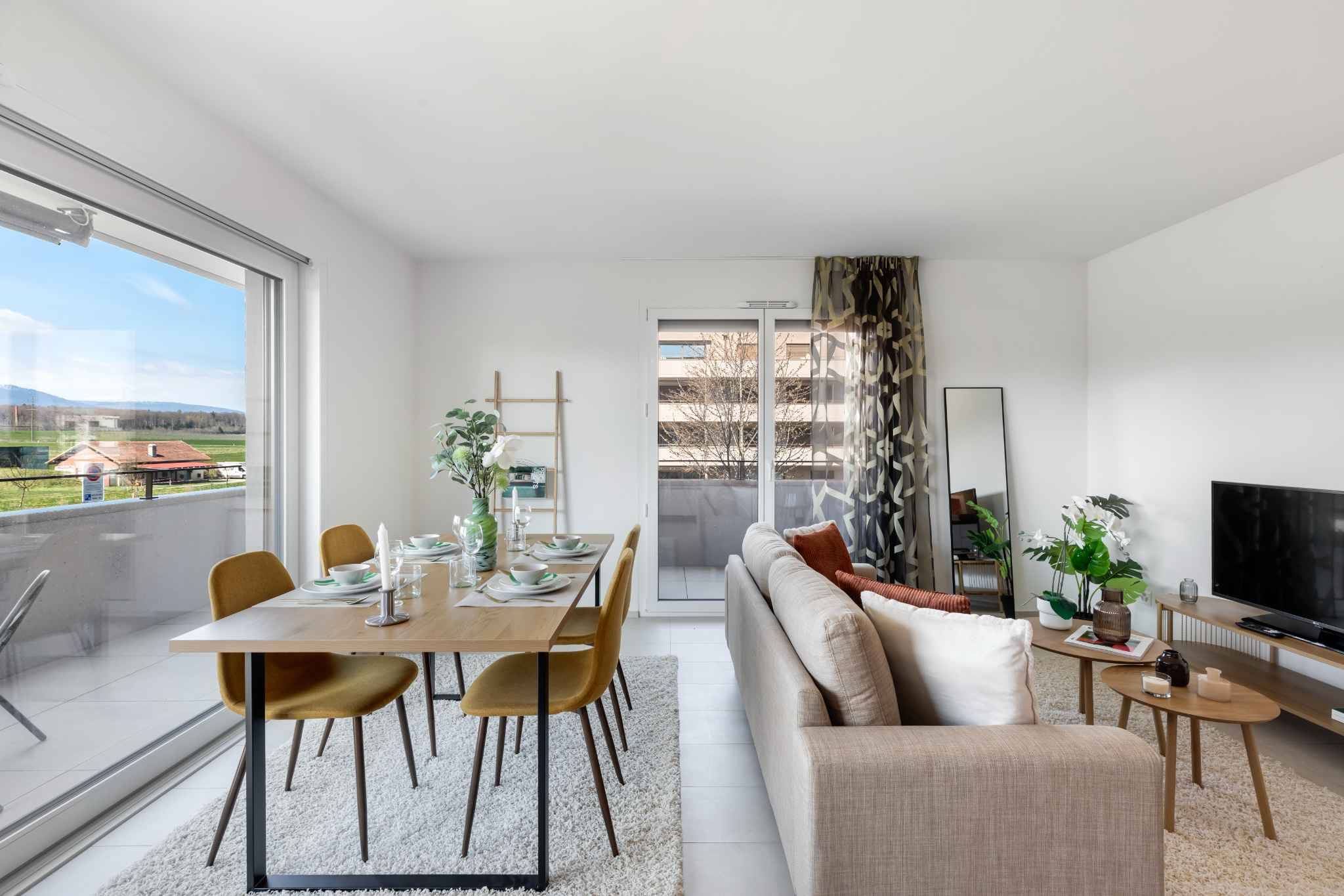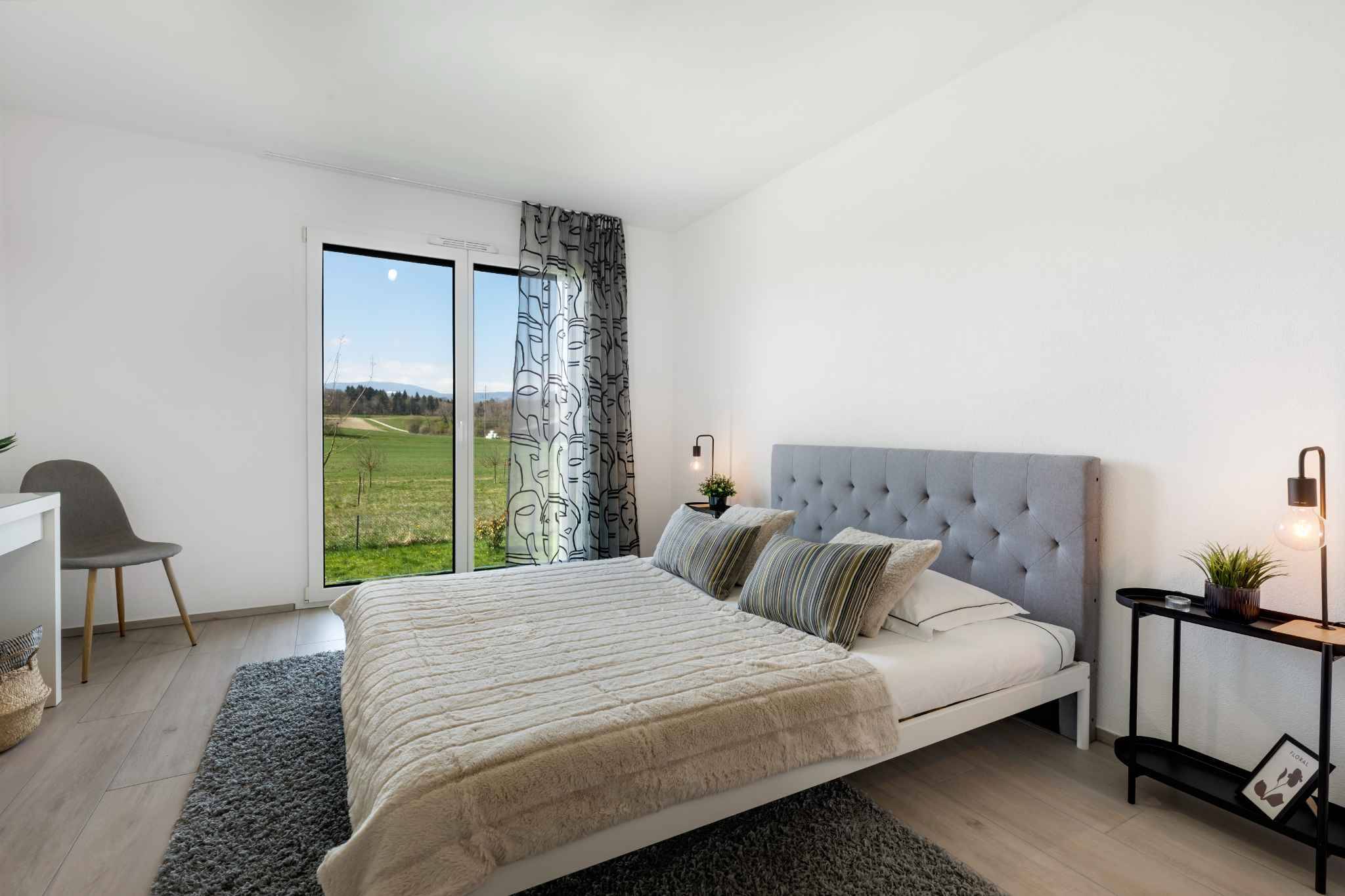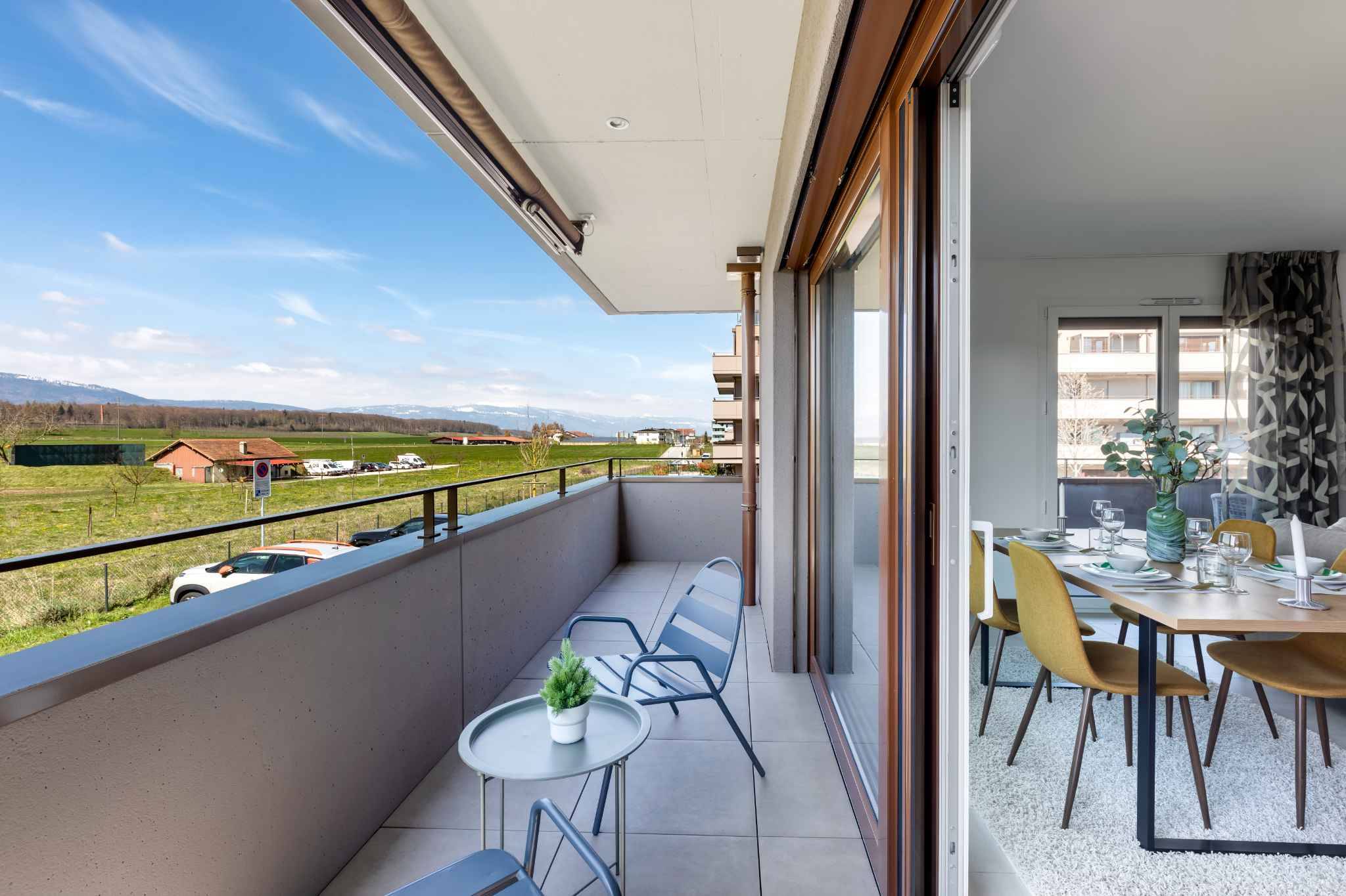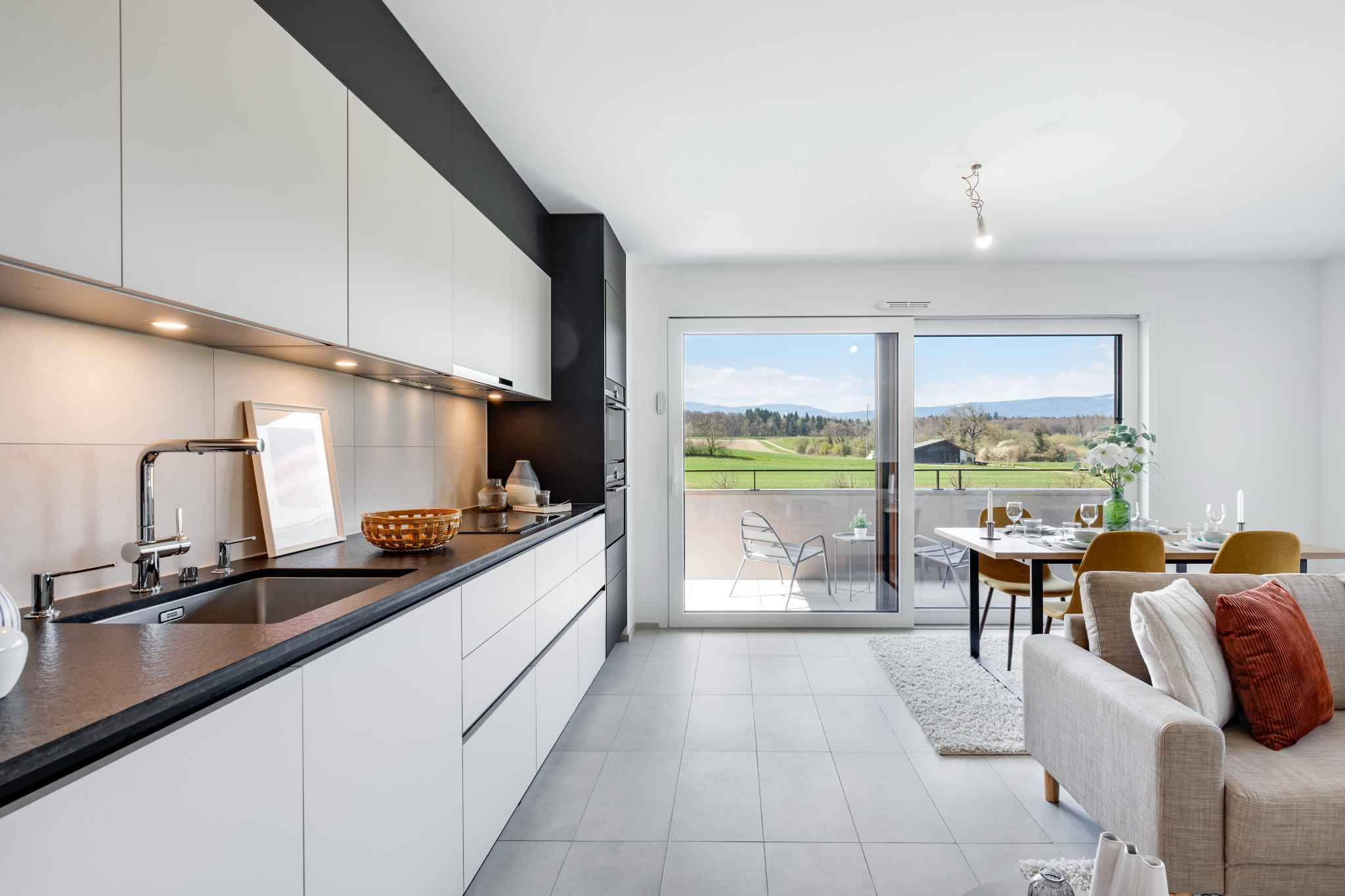 Construit en 2023, ce bel appartement de 3,5 pièces se distingue par sa luminosité naturelle, son agencement optimisé et ses prestations actuelles. La pièce de vie accueillante, s’ouvre sur un balcon d’angle offrant une vue dégagée sur la campagne environnante, parfait pour profiter de moments de détente en extérieur.