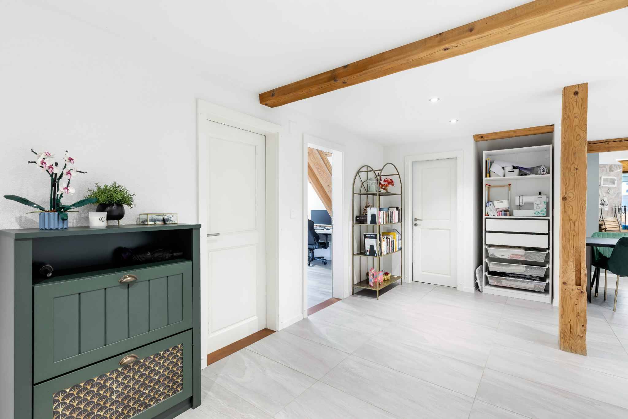 Au cœur d’une ancienne ferme vaudoise du XIXe siècle entièrement réhabilitée, ce duplex de 5,5 pièces prend place dans une PPE intimiste de 7 logements. Rénové avec soin, il conjugue harmonieusement le cachet de l’ancien et le confort contemporain.