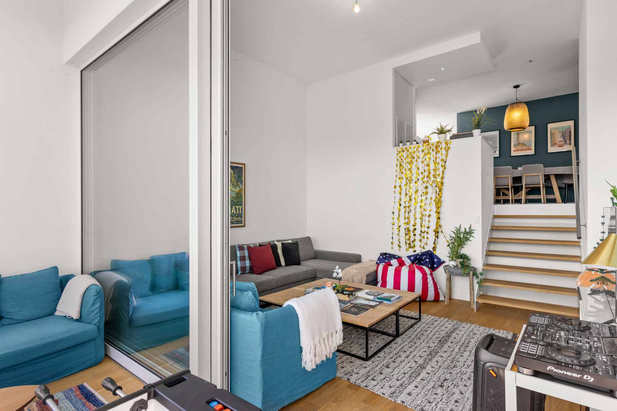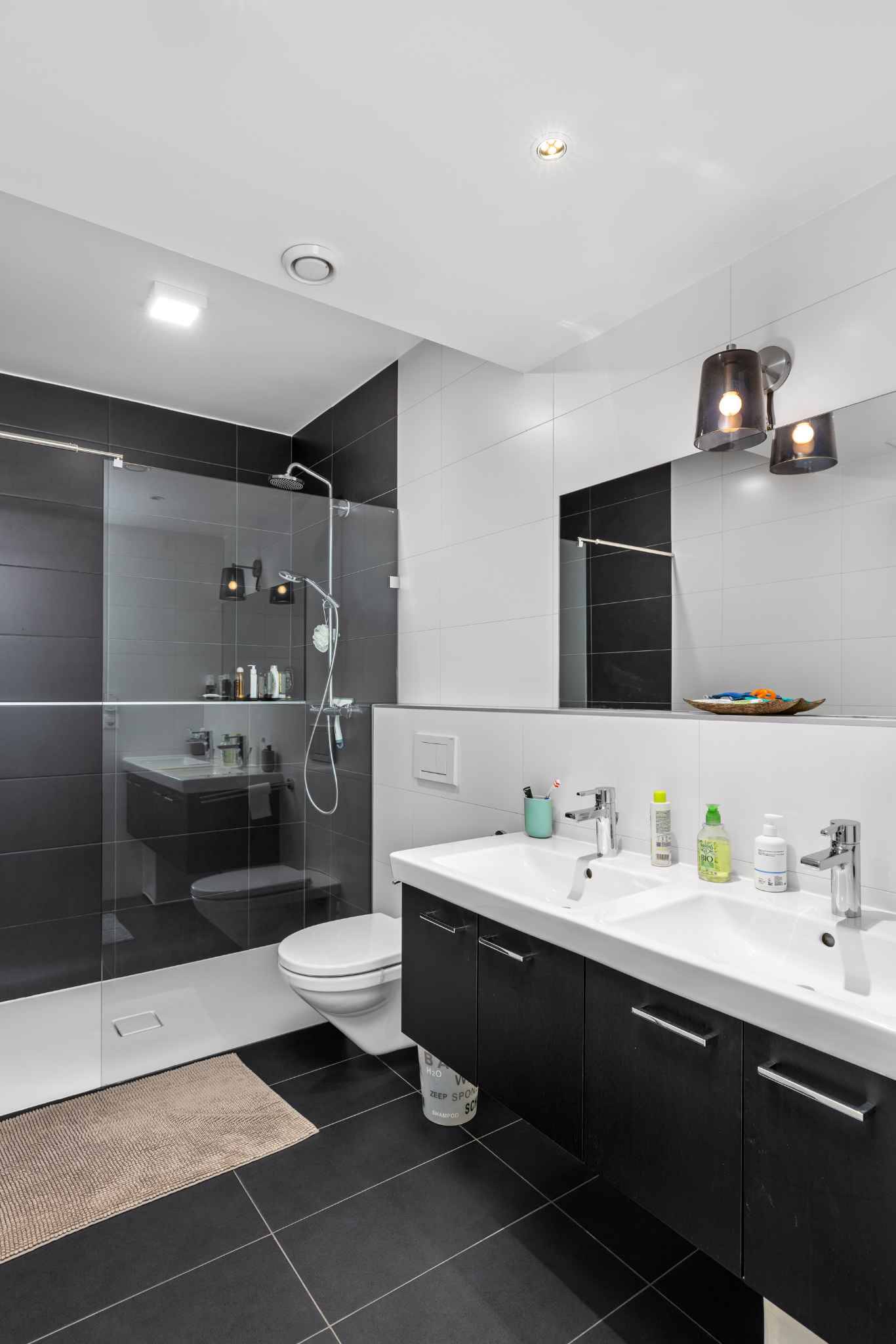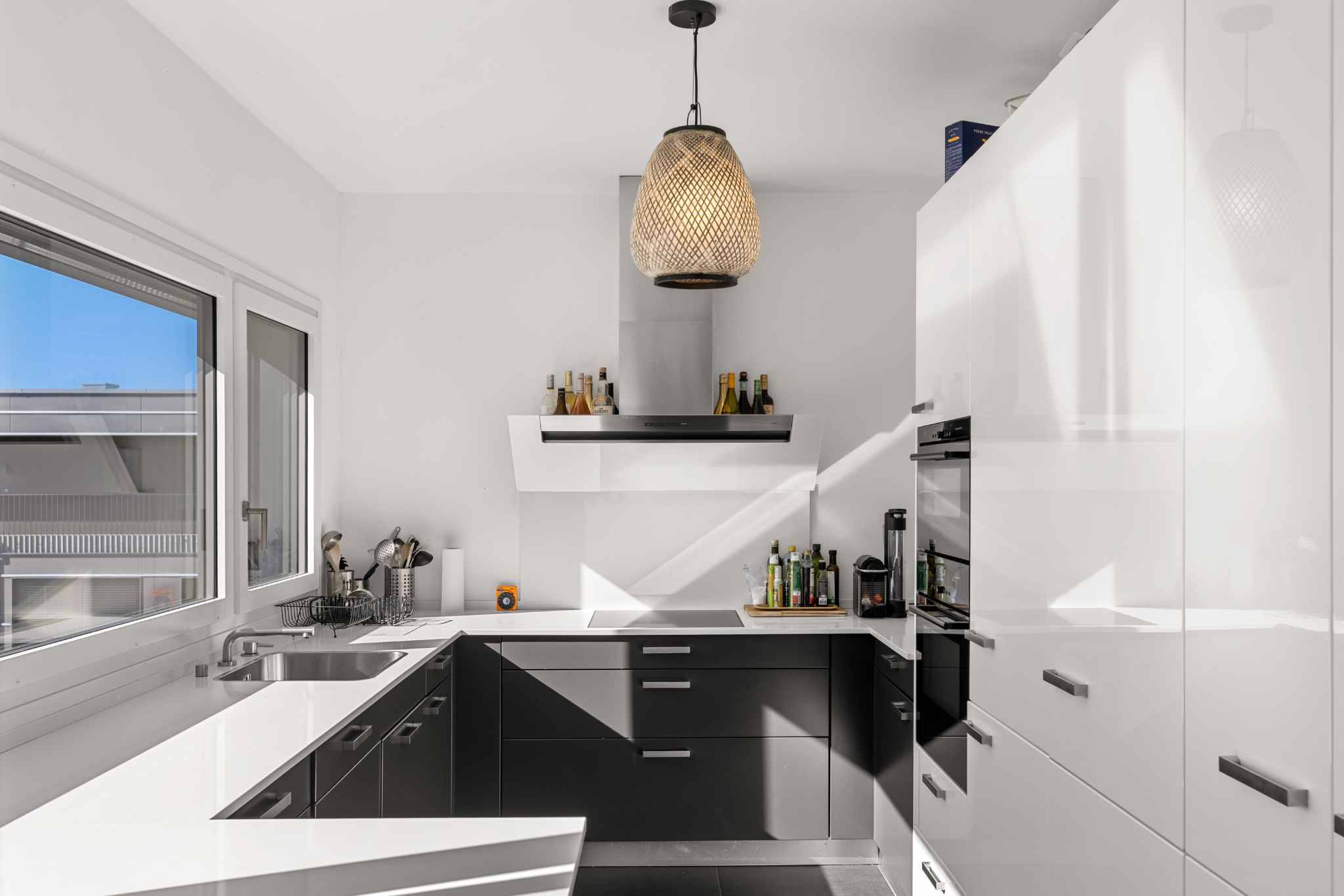 Dès l’entrée, le ton est donné : volumes généreux, finitions soignées, armoires intégrées sur mesure et une atmosphère résolument contemporaine. La pièce de vie impressionne par sa belle hauteur sous plafond et son esprit loft baigné de lumière naturelle. Le séjour et la salle à manger s’ouvrent harmonieusement sur une agréable loggia de 11 m², véritable prolongement extérieur offrant une vue dégagée et inspirante.