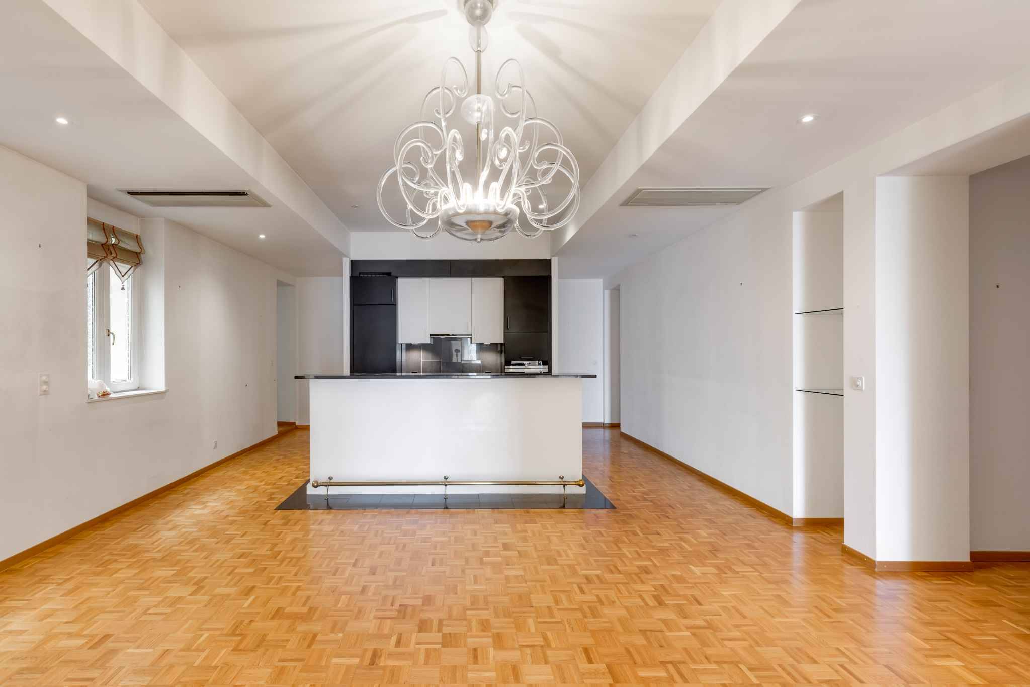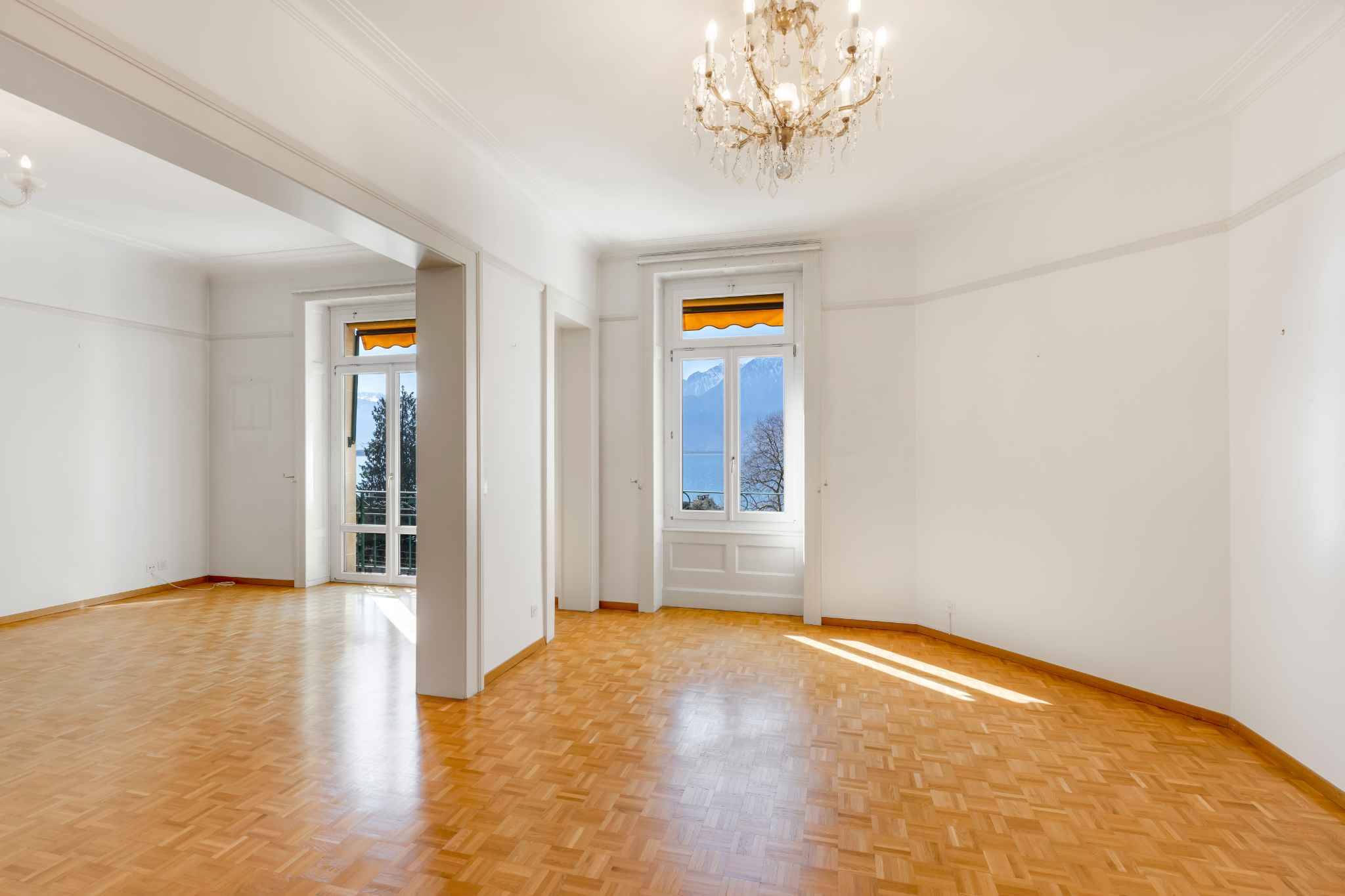 L’appartement se distingue par une distribution originale et des volumes généreux, sublimés par de belles hauteurs sous plafond qui renforcent la sensation d’espace. Les espaces de vie, spacieux et lumineux, accueille une cuisine ouverte, un espace salle à manger, un salon ainsi qu’un double séjour, offrant un cadre à la fois convivial et raffiné. Le séjour offre une belle ouverture sur le lac Léman et les Alpes.