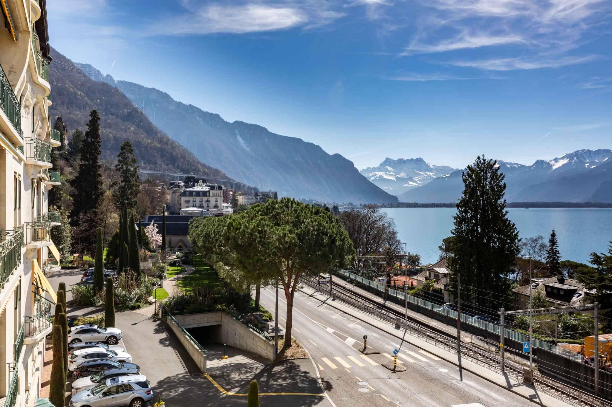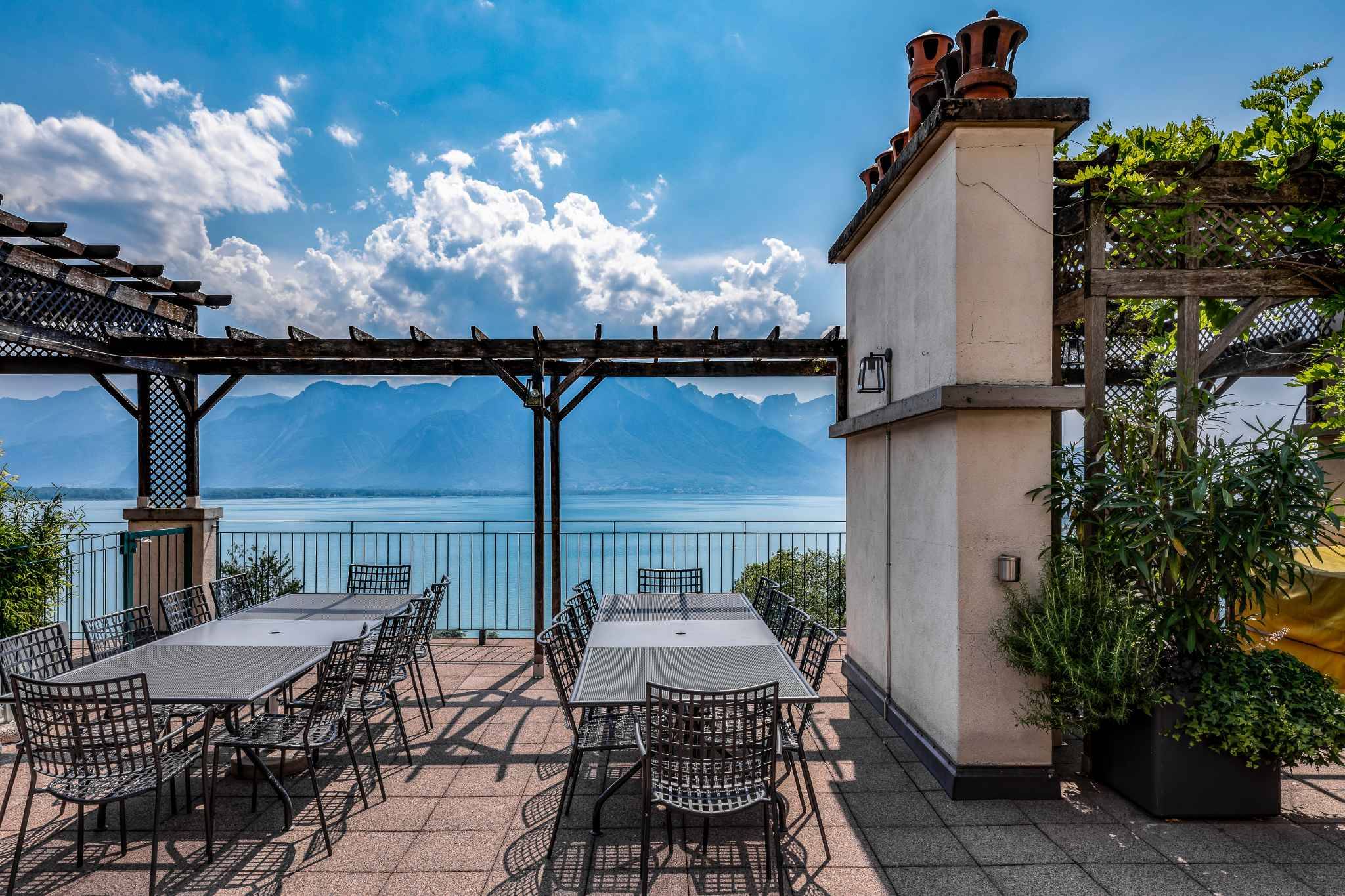 Les résidents de la copropriété profitent également d’une terrasse commune en toiture, offrant un panorama exceptionnel sur le lac et la Riviera.