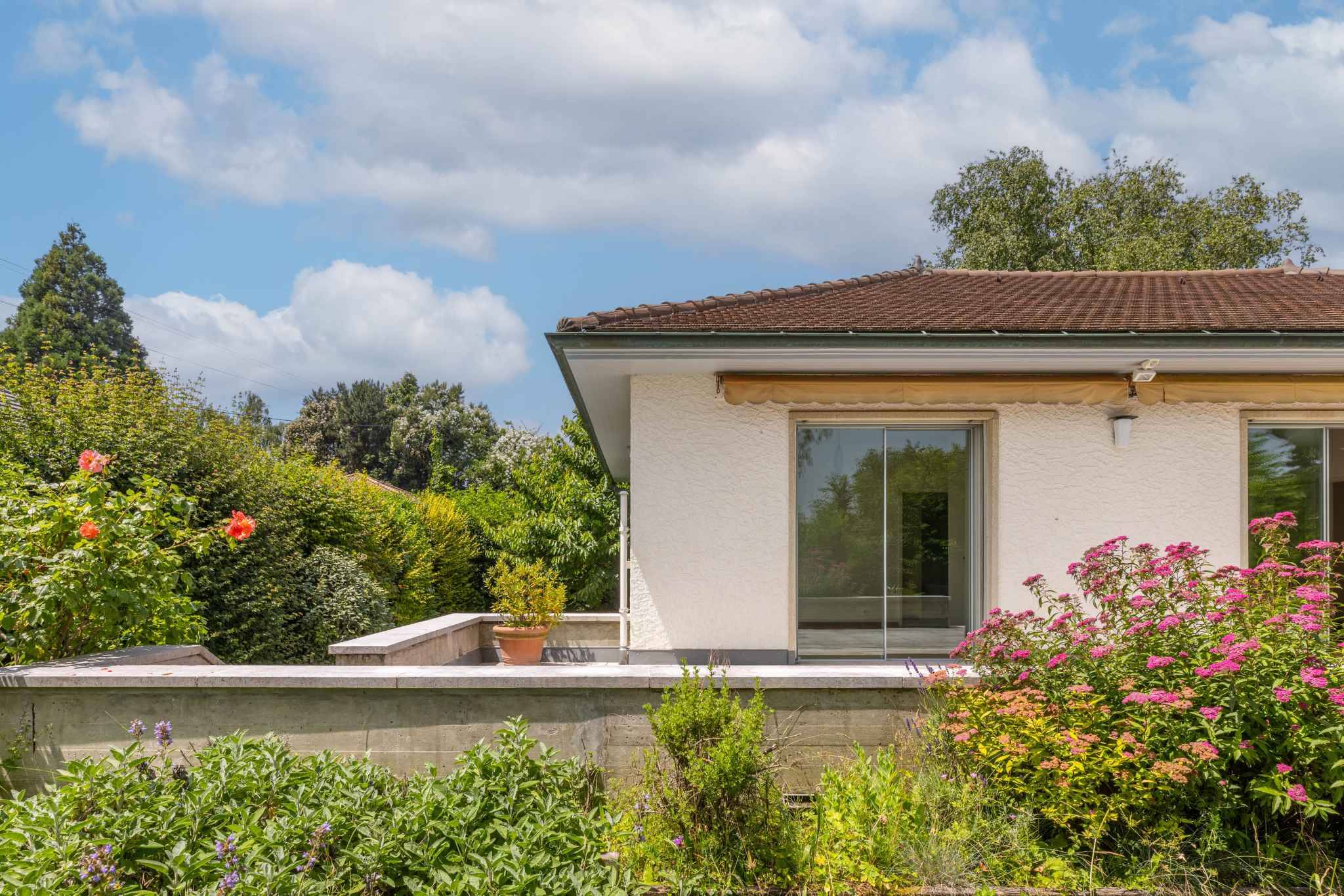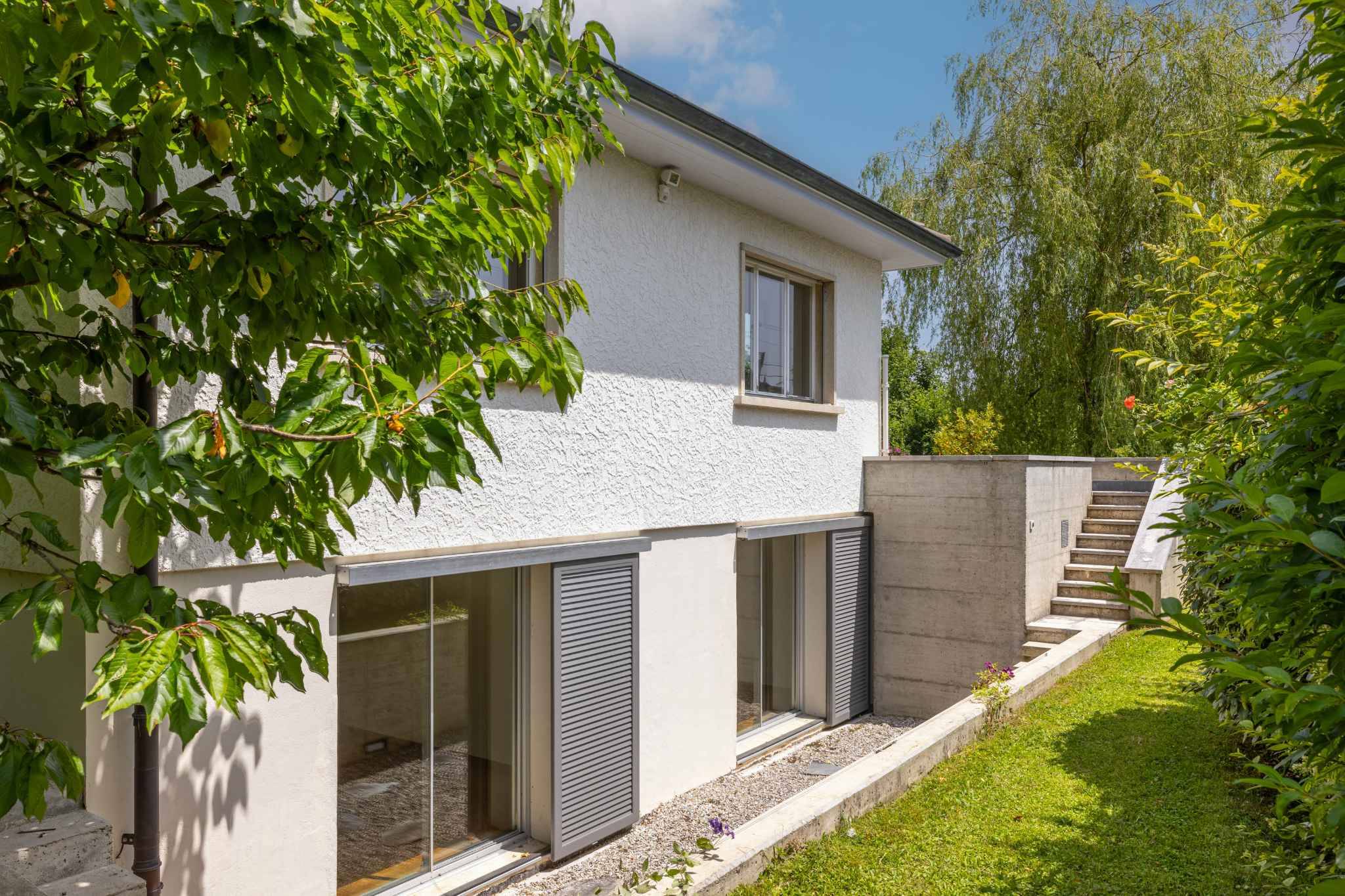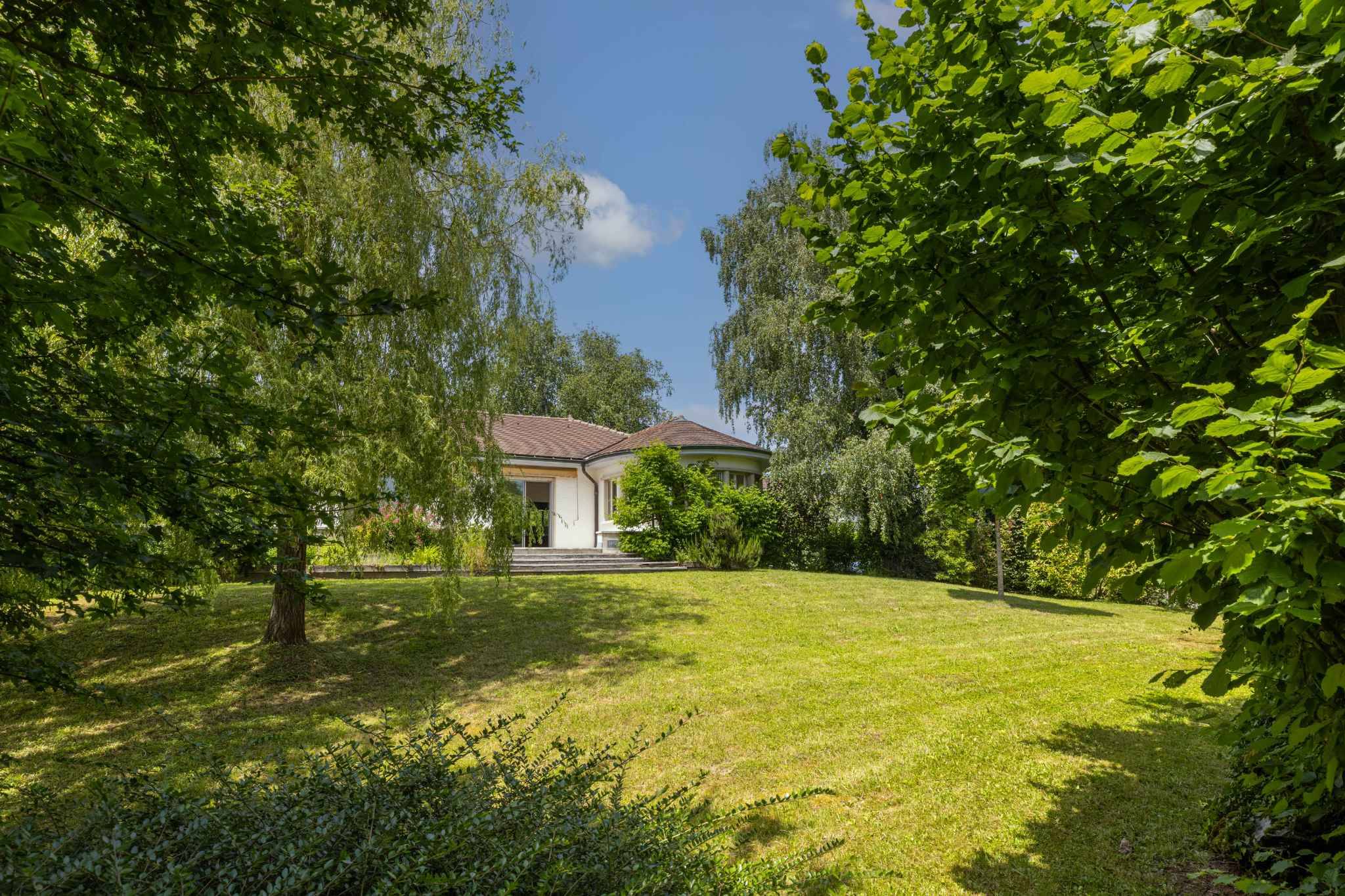 Implantée sur une belle parcelle de 1’282 m², la propriété bénéficie d’un environnement sans nuisance sonore, au cœur d’un quartier verdoyant et harmonieux, exclusivement composé de villas. L’atmosphère y est sereine, sécurisante et particulièrement appréciée des familles.