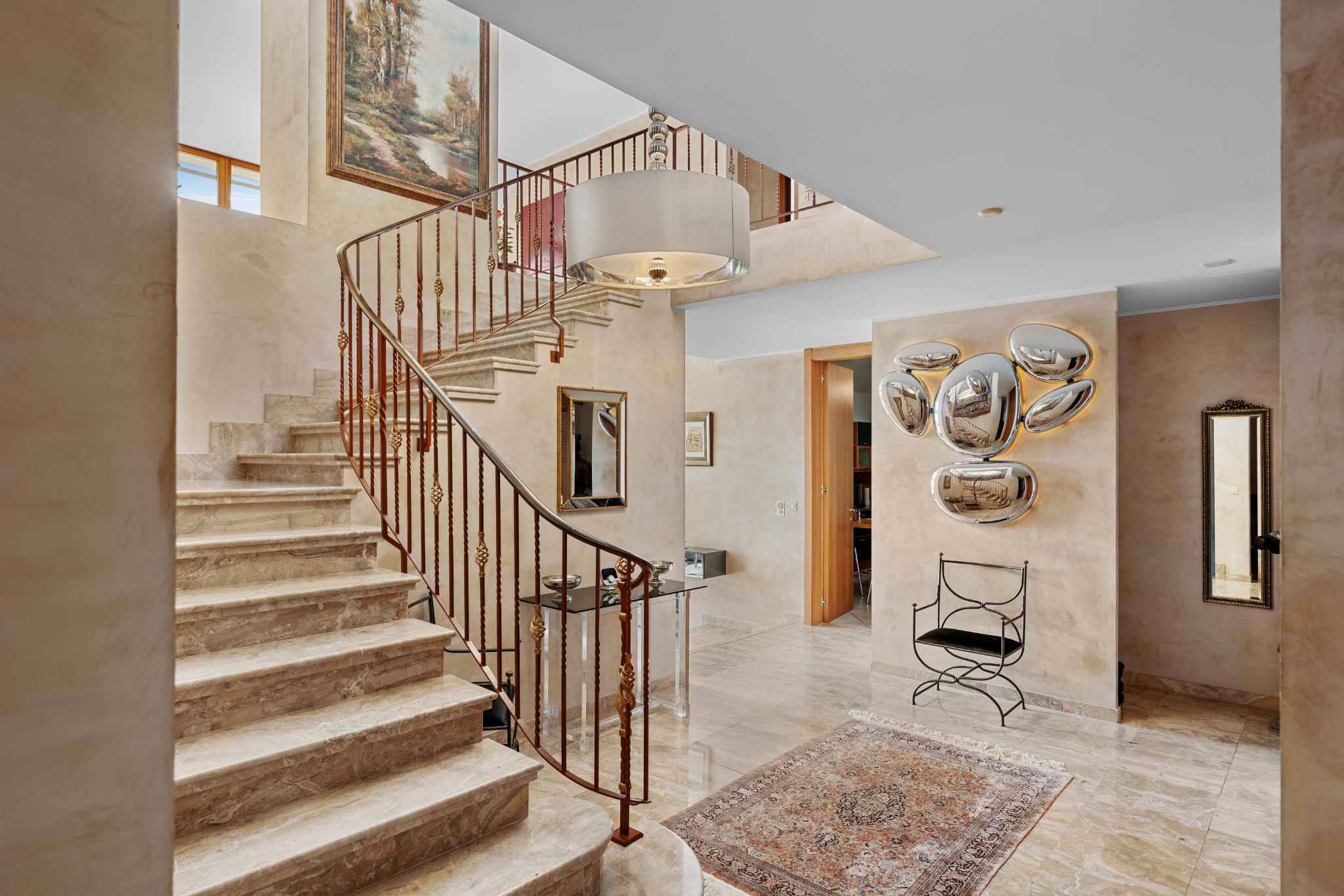 Le sous-sol, parfaitement aménagé, comprend un garage double, une salle de jeux ou de fitness, une cave à vins climatisée, ainsi qu’un espace bien-être avec sauna et douche.