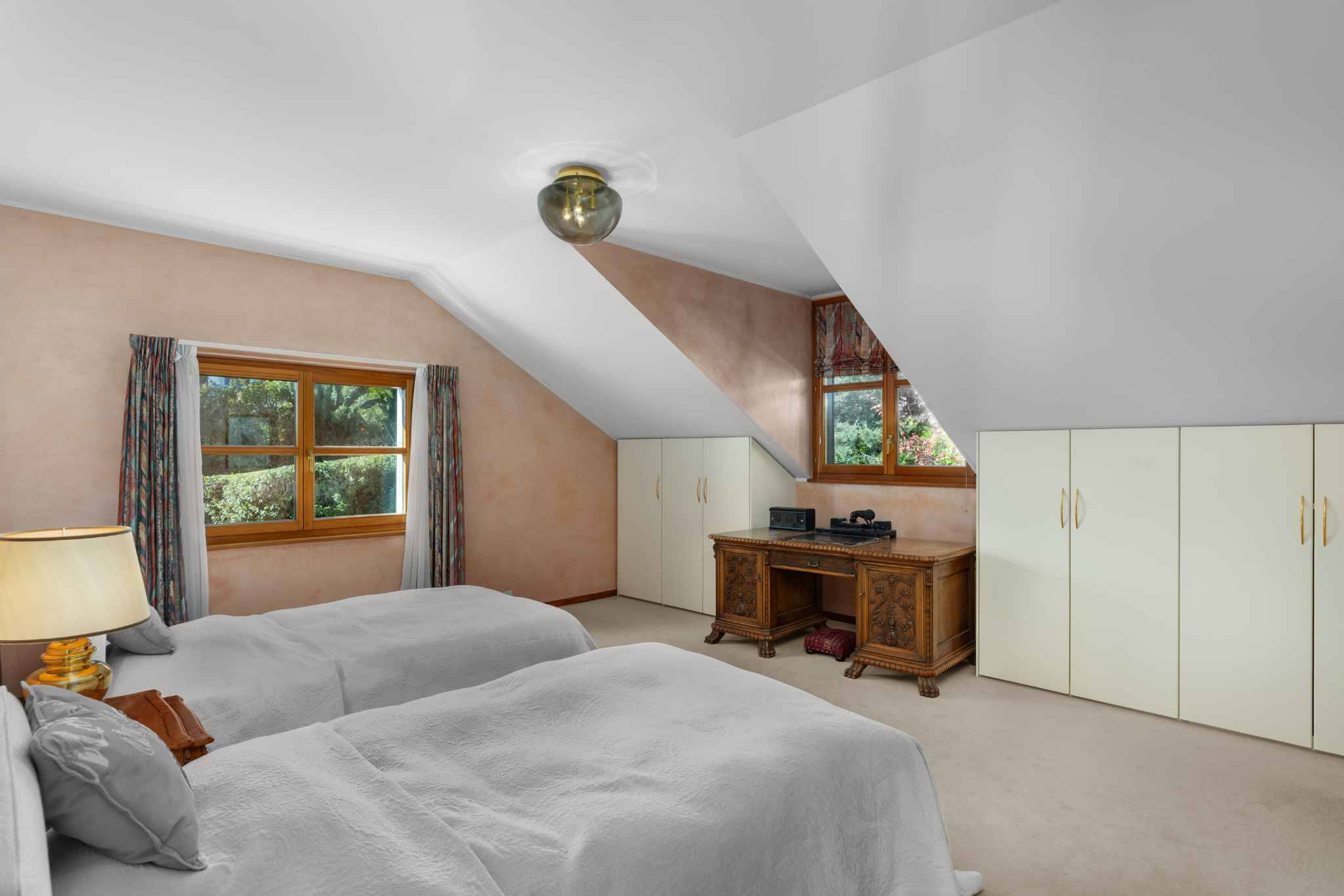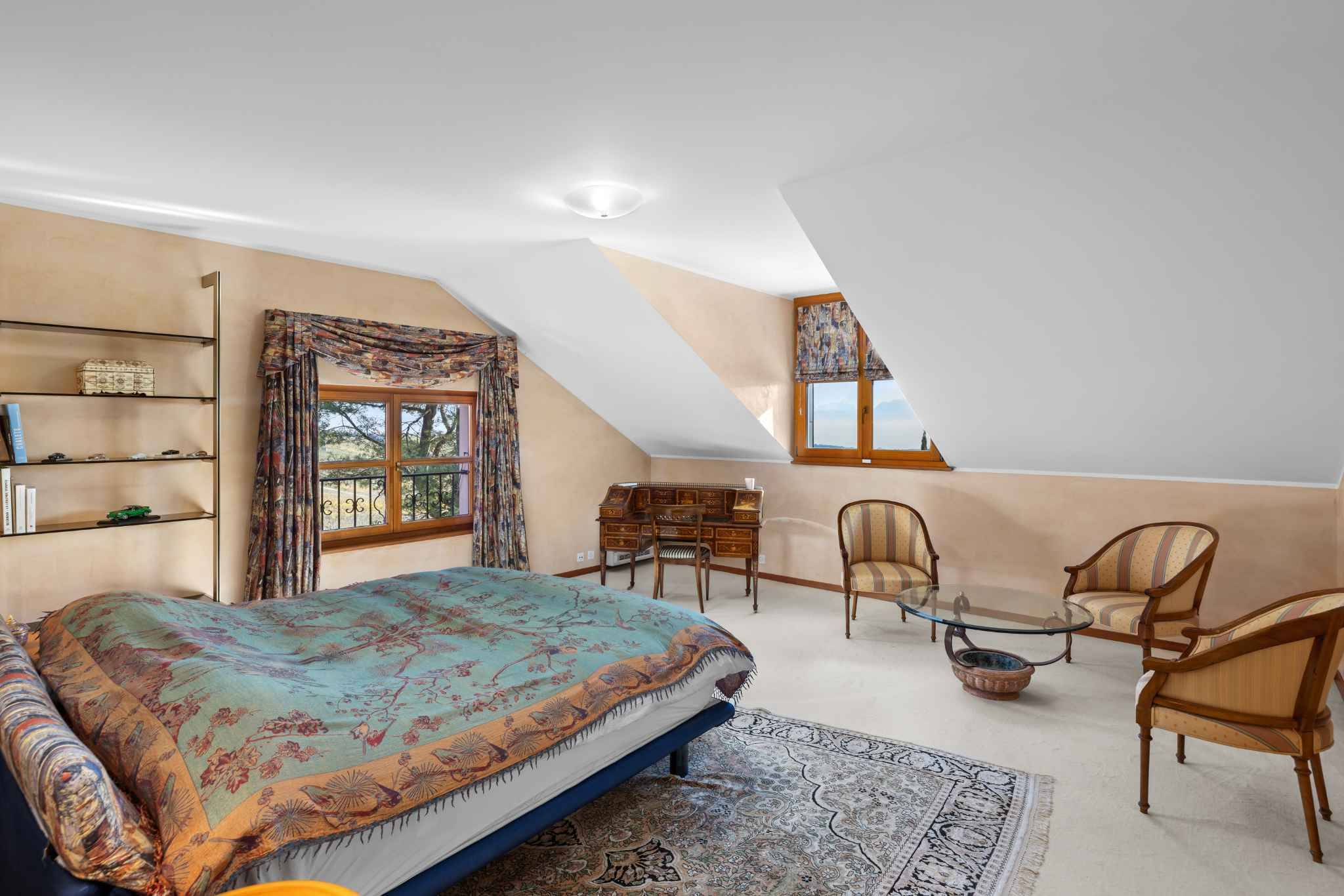 La partie nuit comprend trois chambres, dont une suite parentale avec dressing et salle de bains privative. Un studio indépendant vient compléter l’ensemble, idéal pour accueillir une jeune fille au pair ou des invités.