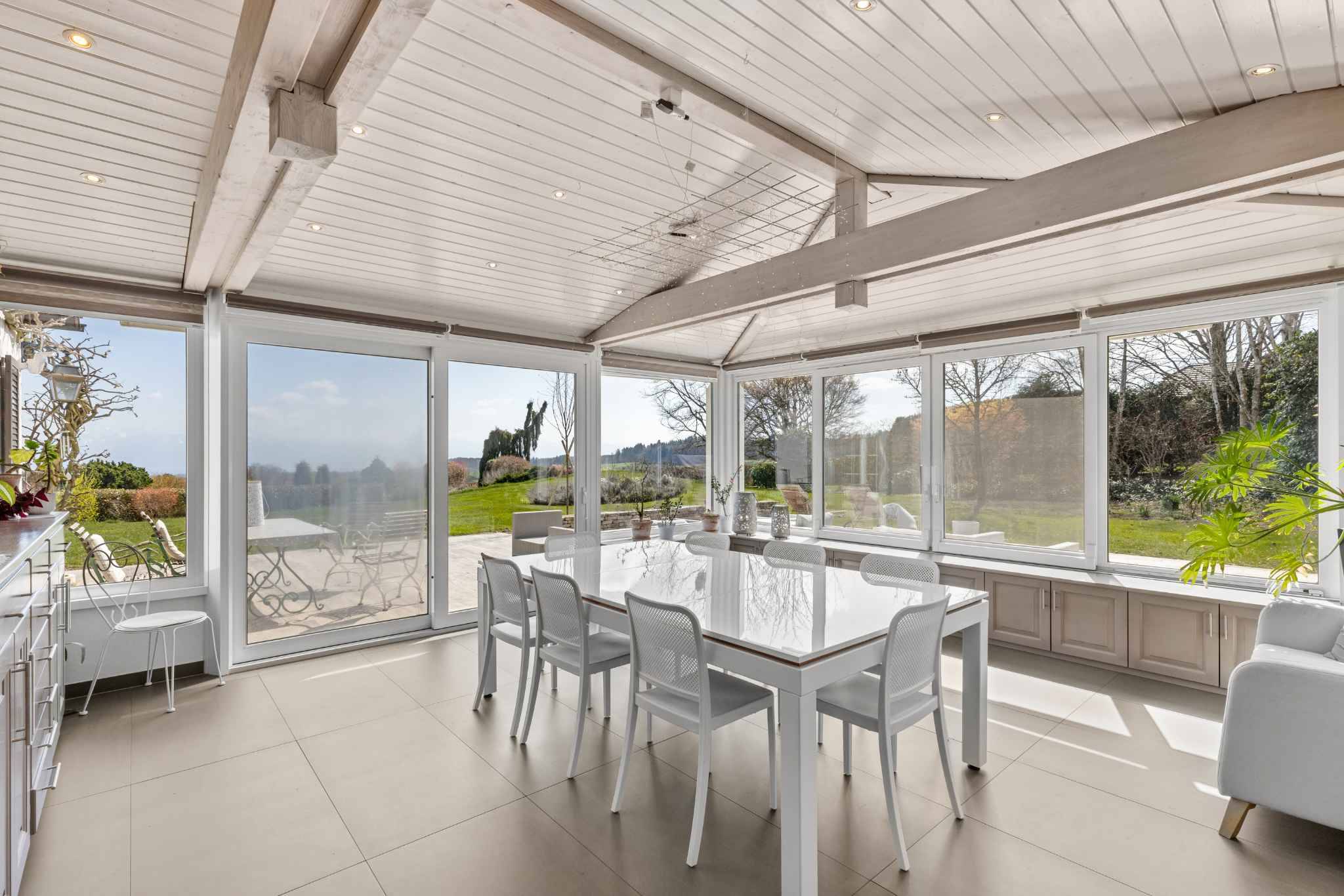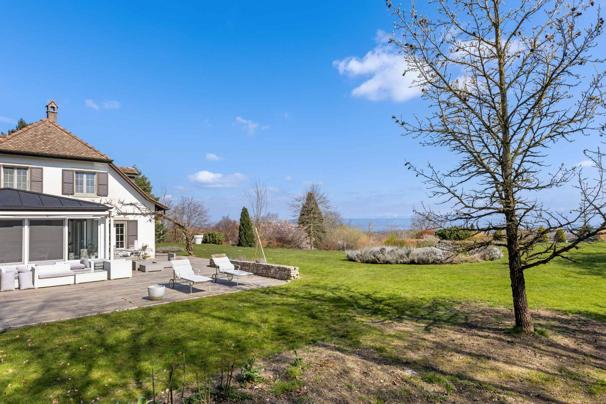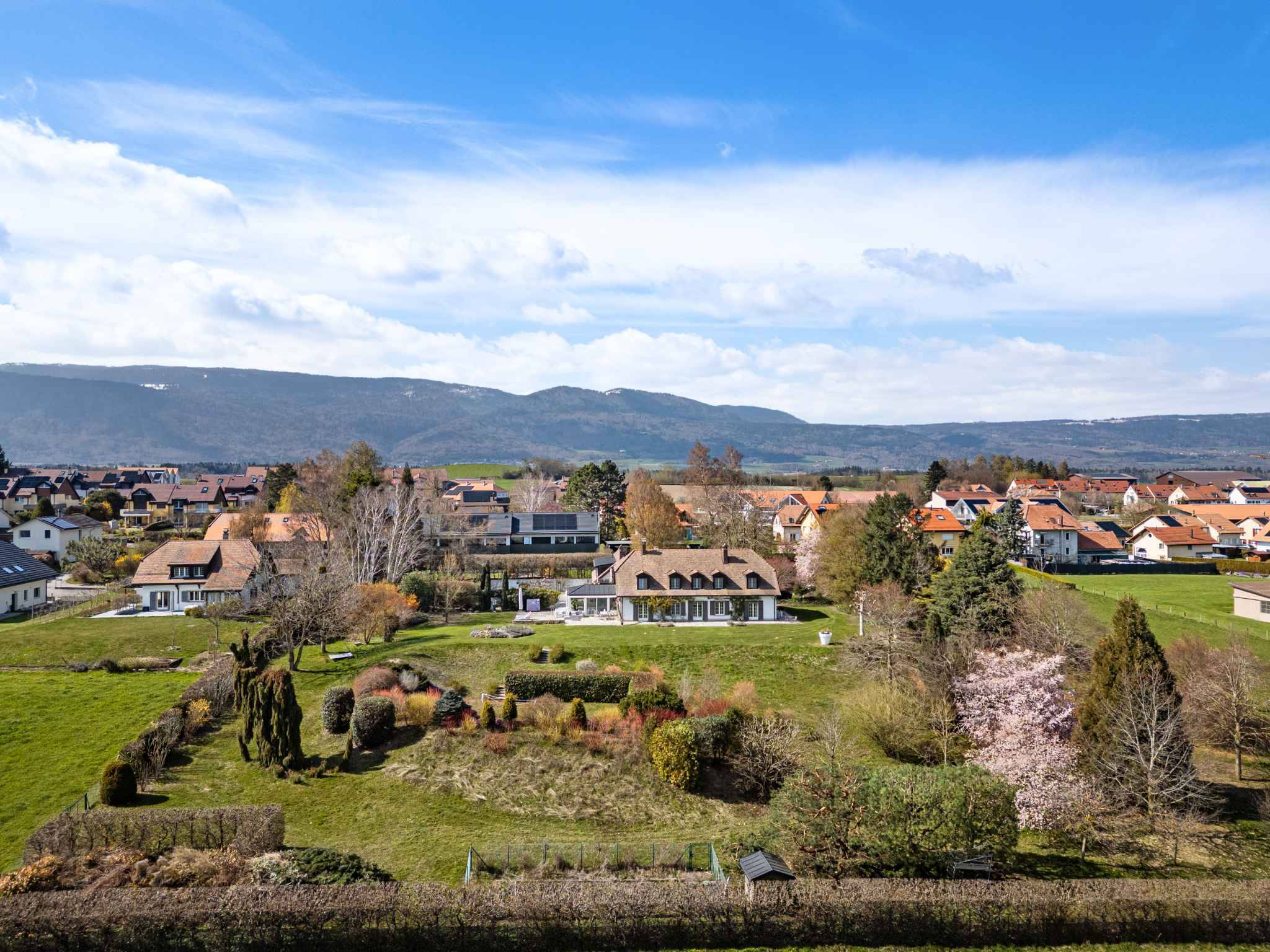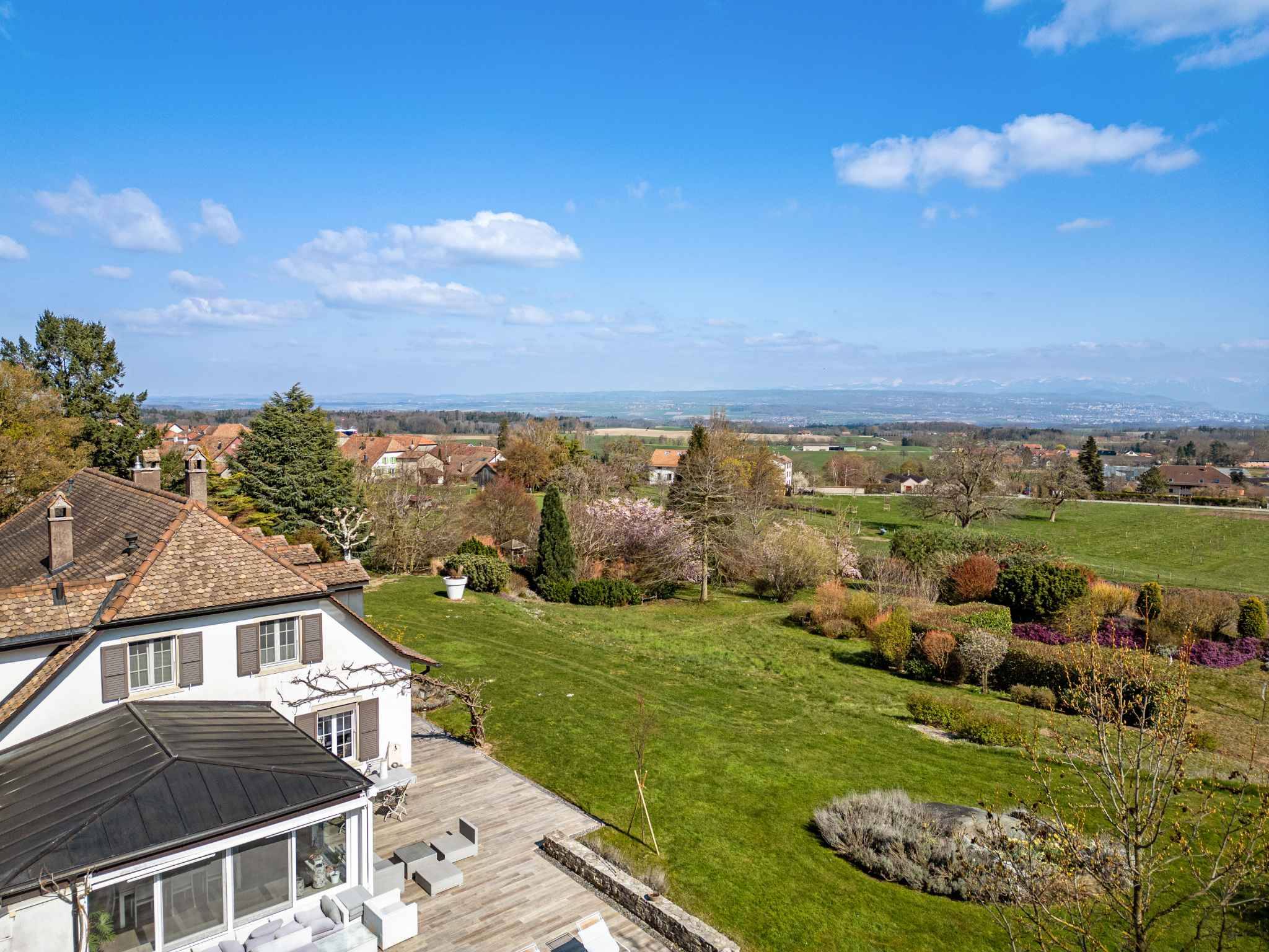 Érigée en position dominante, la propriété bénéficie d’un cadre absolument privilégié, à l’abri des regards. Son orientation plein sud dévoile un panorama spectaculaire sur le bassin lémanique, bordé par des zones agricoles et des espaces protégés, garantissant une quiétude durable et une vue inaltérable.
