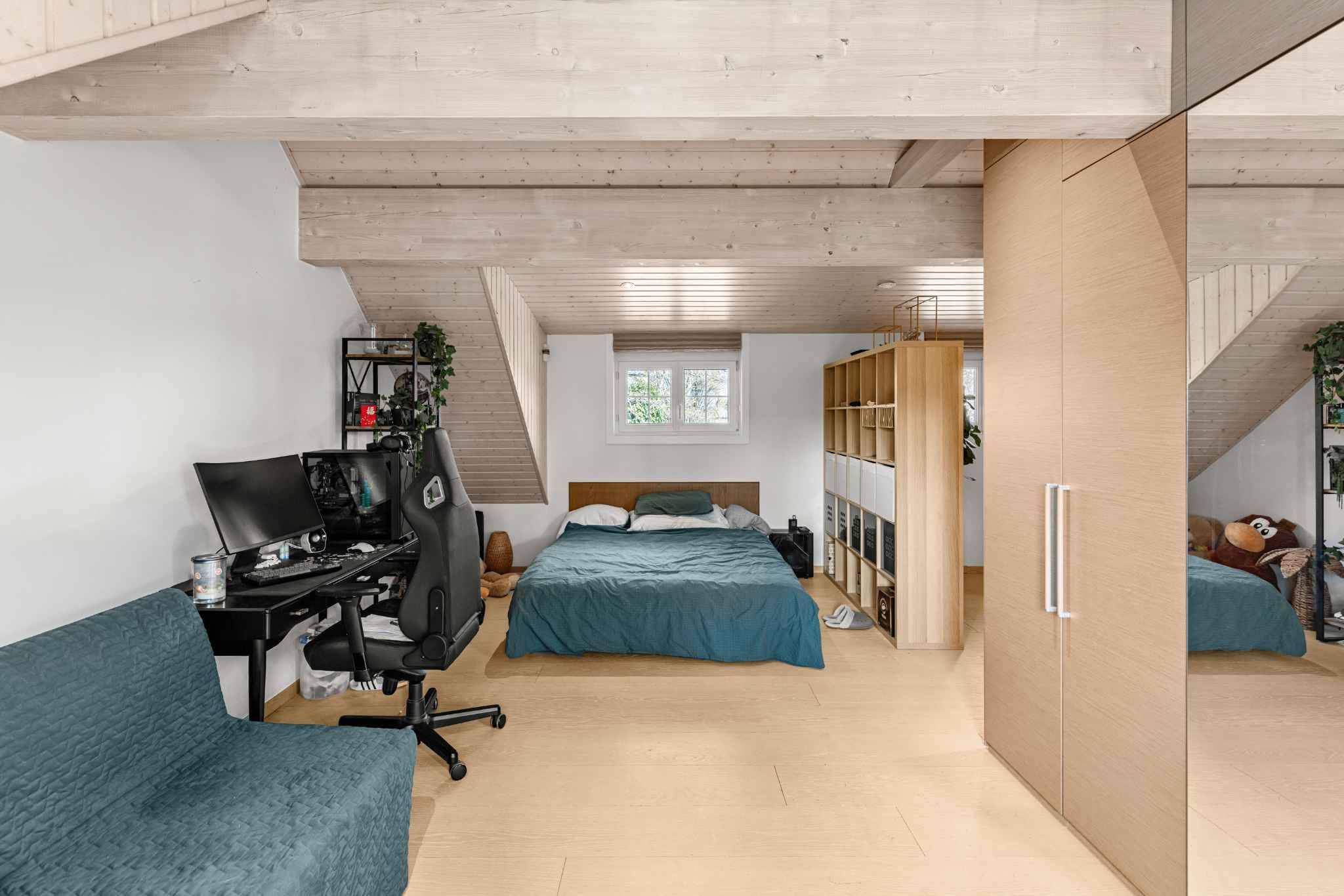 Le sous-sol complète harmonieusement la propriété avec des espaces dédiés aux loisirs et à l’intendance. Il accueille une vaste salle de jeux agrémentée de nombreux rangements intégrés (12 armoires), offrant un espace aussi fonctionnel que polyvalent. Une cave à vin ravira les amateurs, tandis qu’un authentique carnotzet invite à des moments conviviaux dans une atmosphère chaleureuse. Une buanderie ainsi qu’un local technique équipé, notamment d’un adoucisseur d’eau, viennent parfaire cet étage, pensé pour répondre aux exigences du quotidien avec discrétion et efficacité.