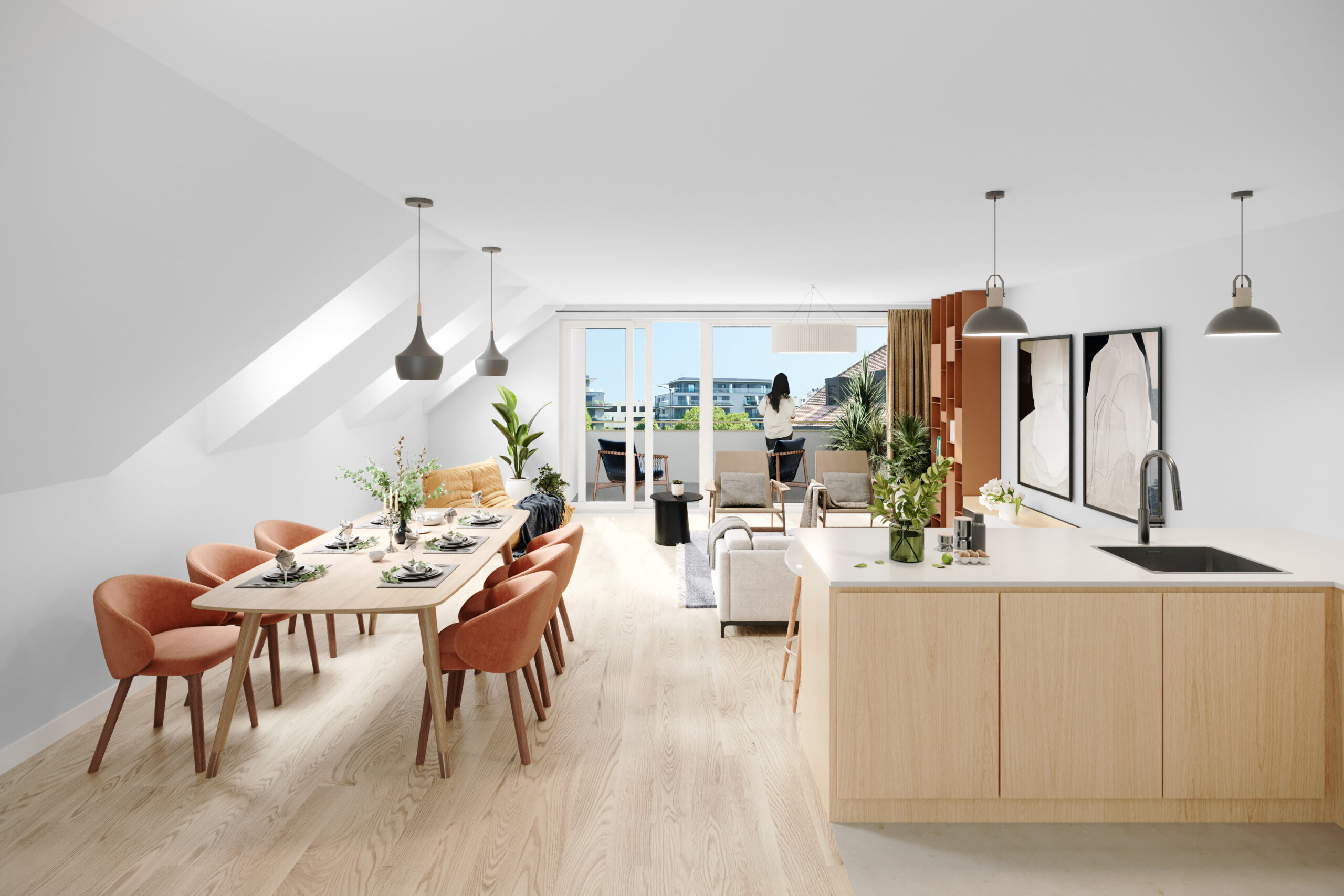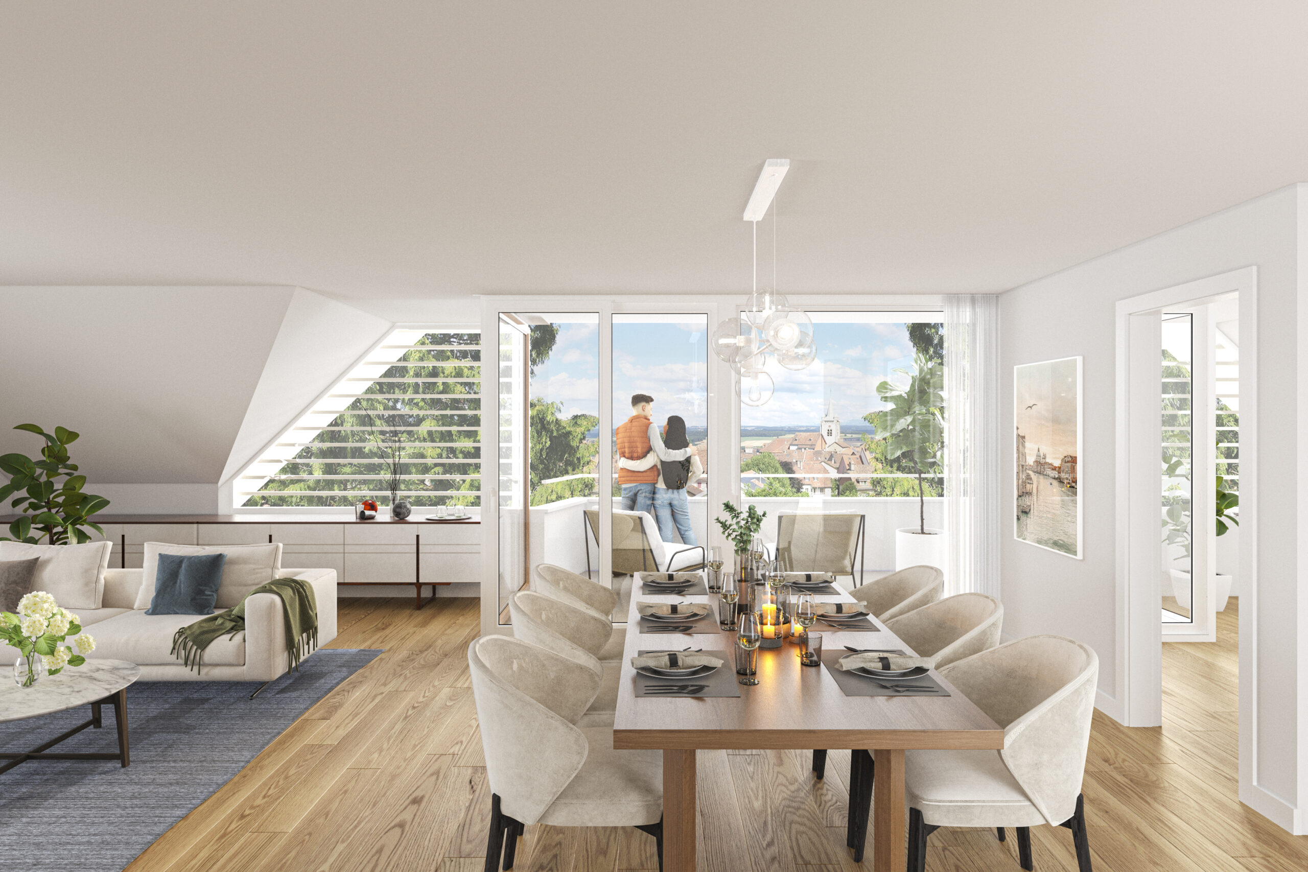 D’une architecture élégante, sobre et contemporaine la résidence propose une vaste offre de typologies, du 1.5 pièce aux 5.5 pièces en duplex. De quoi satisfaire les besoins, des jeunes couples et les familles, sans oublier les seniors, ainsi que les investisseurs.